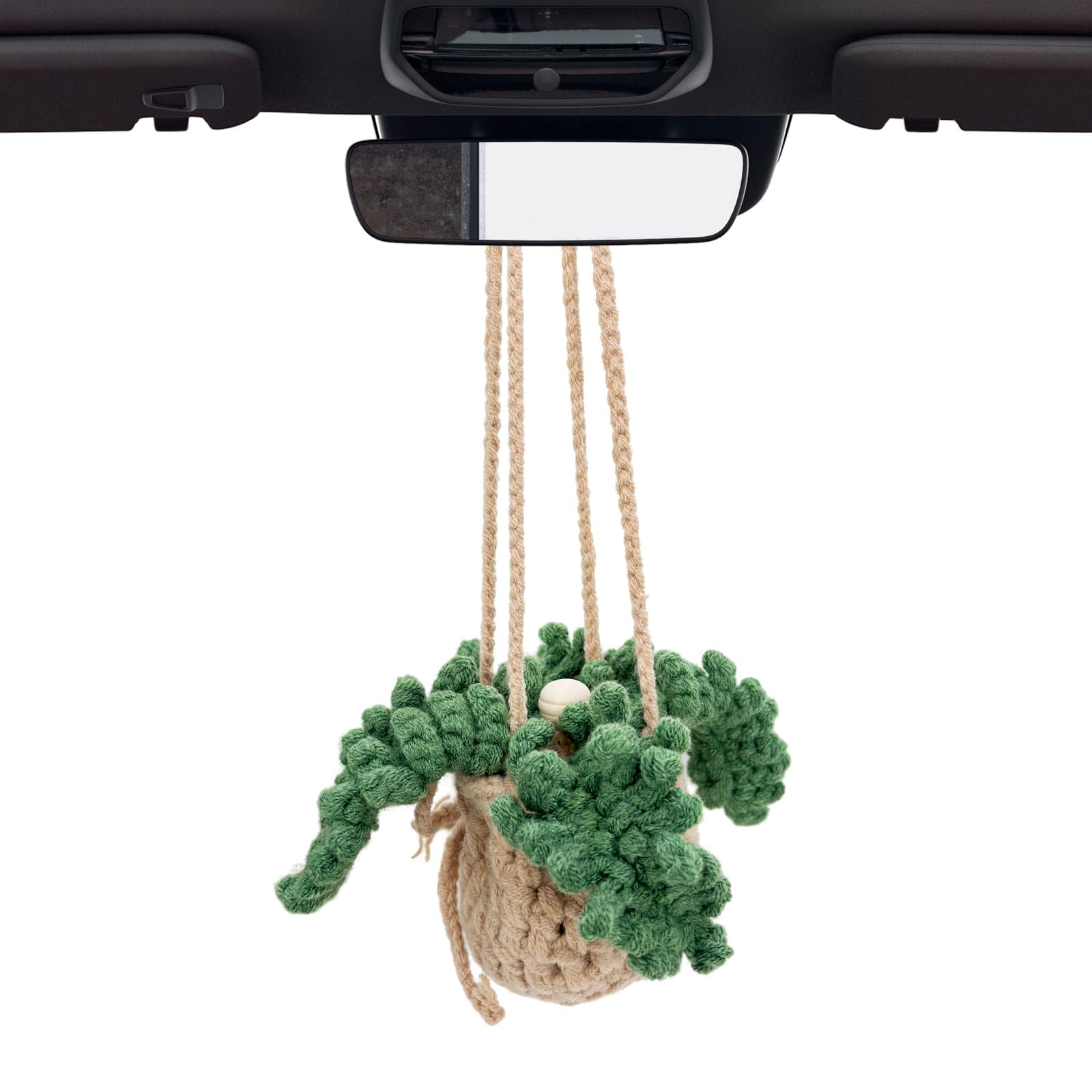 Ambientador de coche de ganchillo, 2 unidades, botella difusora vacía de 0.4 fl oz con cesta colgante de ganchillo para plantas, d