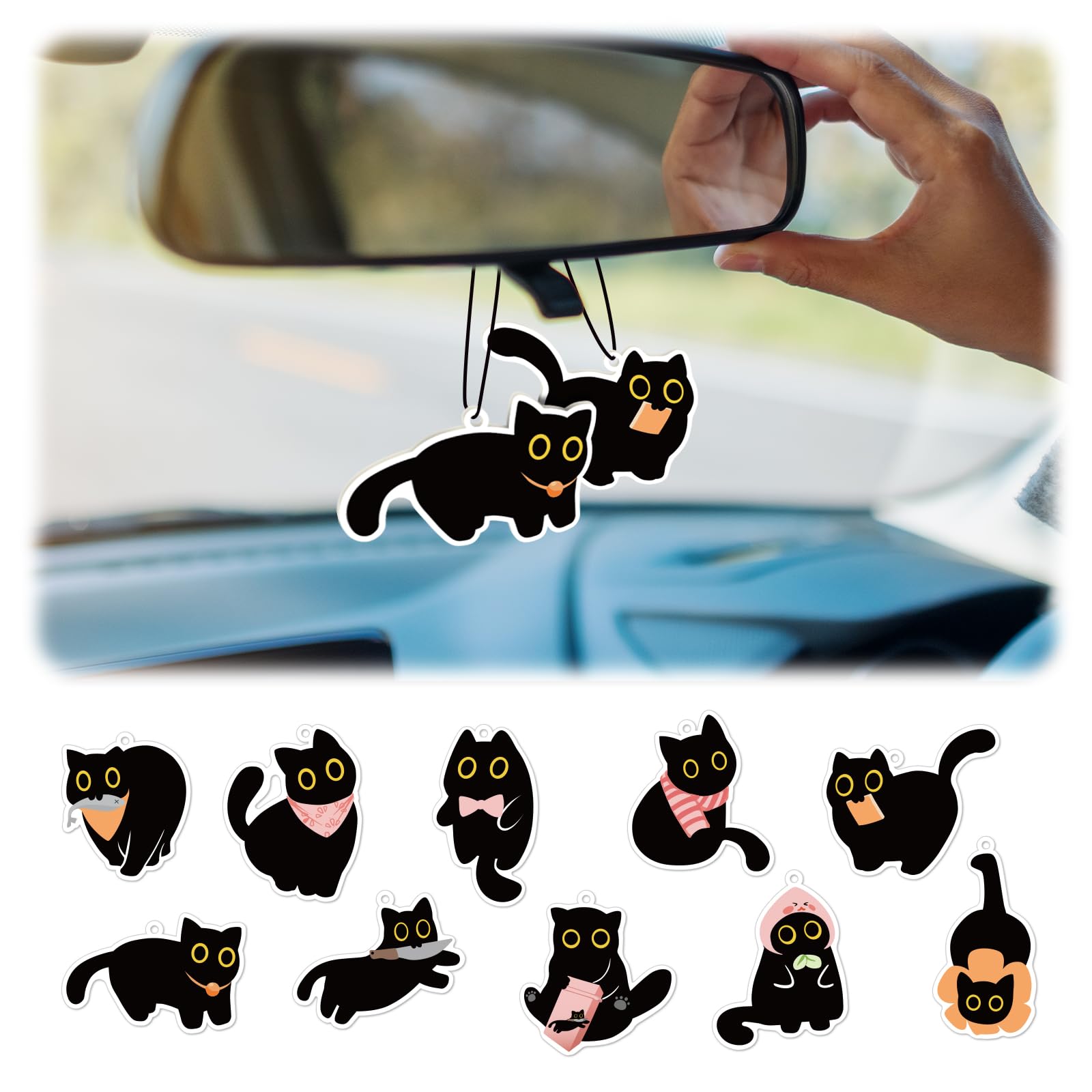 10 ambientadores colgantes de gato negro, accesorios perfumados para automóvil, adornos interiores, fragancia de larga duración pa