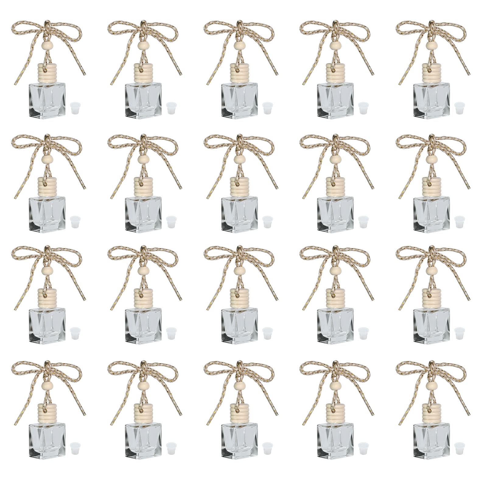20 botellas vacías de perfume para automóvil de 0.3 fl oz con cuerda de alambre dorada, difusores de automóvil para aceites esenci
