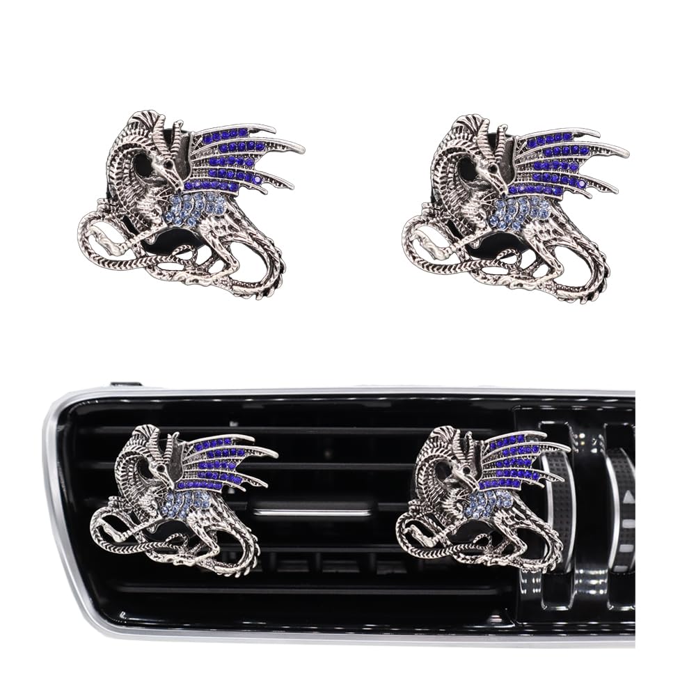 Bling Dragon – Accesorios de clip de ventilación de dragón, 2 clips de ambientador vintage plateados, decoraciones de salida de au