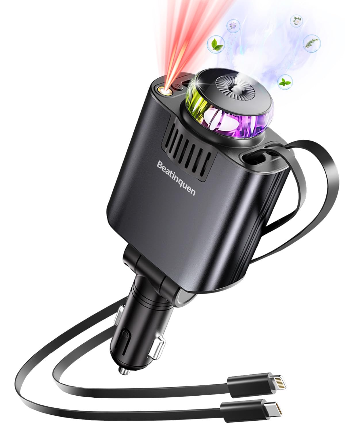 Cargador retráctil para automóvil con difusor de ambientador y luces de estrella, adaptador de encendedor de cigarrillos multipuer