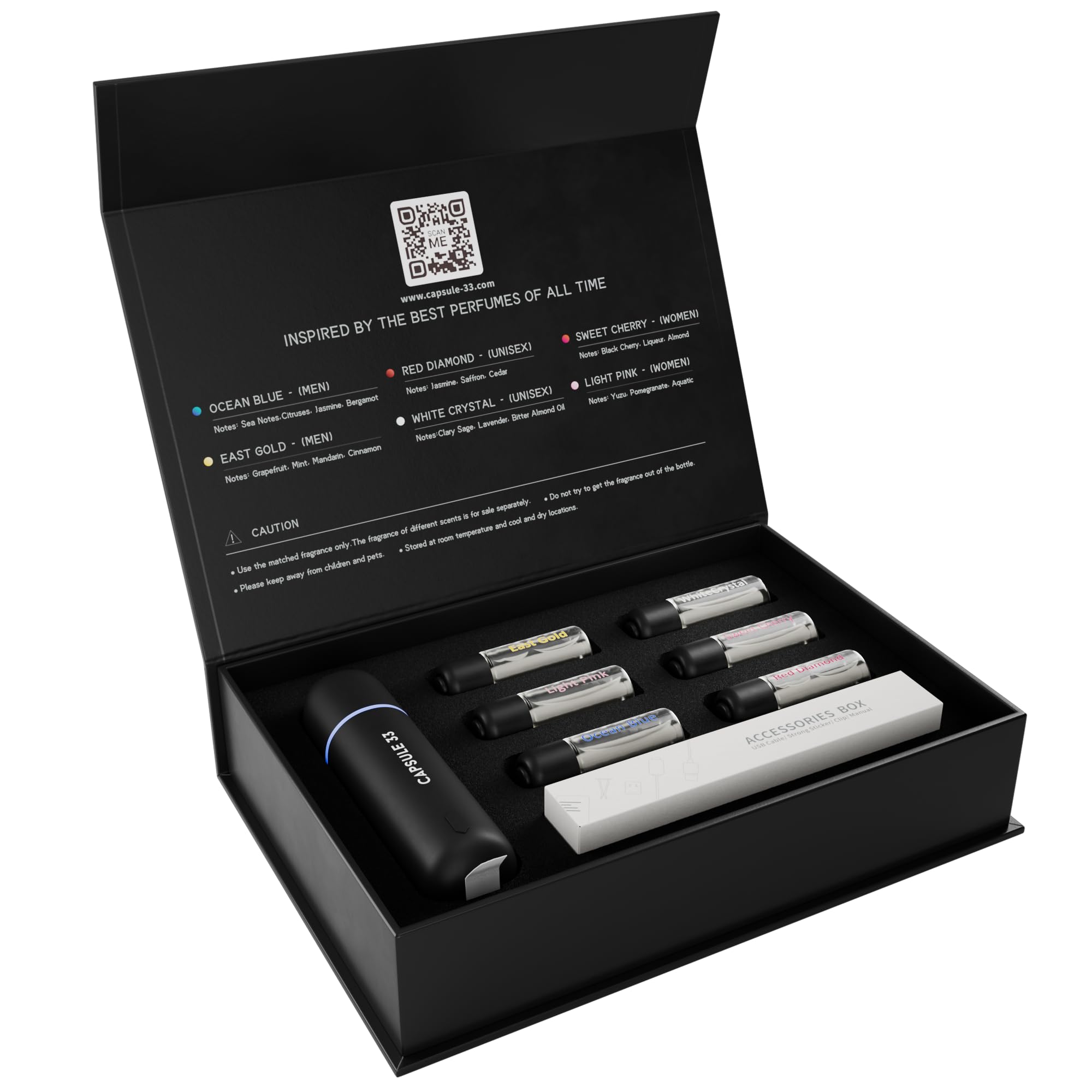 Paquete de inicio de perfume para automóvil, ambientador de aire, difusor ultrasónico de aroma, 6 fragancias (cristal blanco, diam