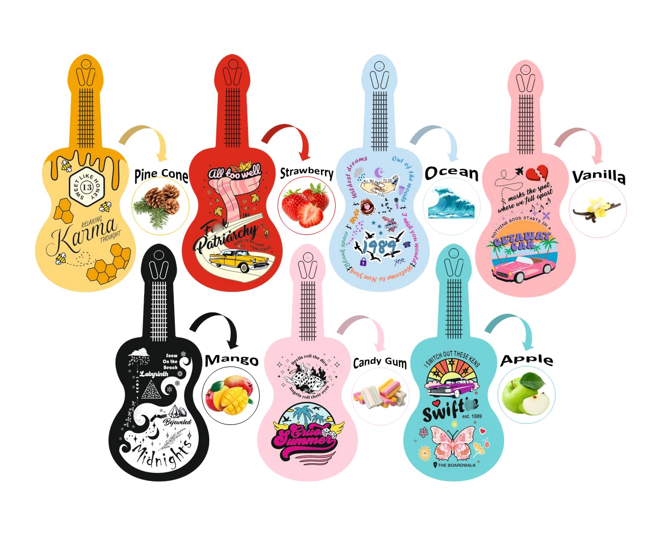 Ambientador de autos para fanáticos de Taylor – Paquete de 7 ambientadores colgantes de doble cara con forma de guitarra Swiftie p
