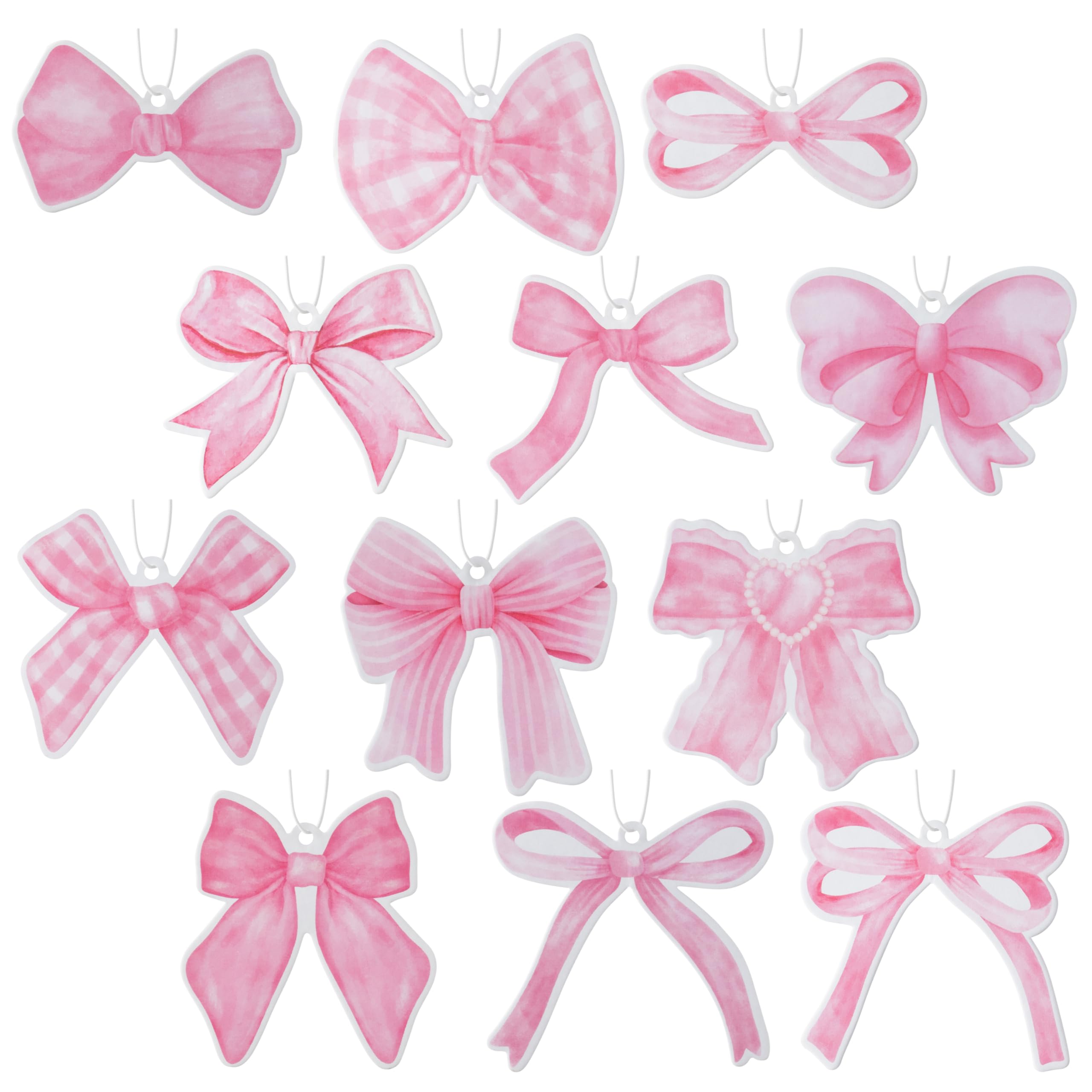 A1diee Ambientador de coche con lazo de coqueta rosa, 12 piezas, colgante estético para automóvil, adornos para refrescar el aire