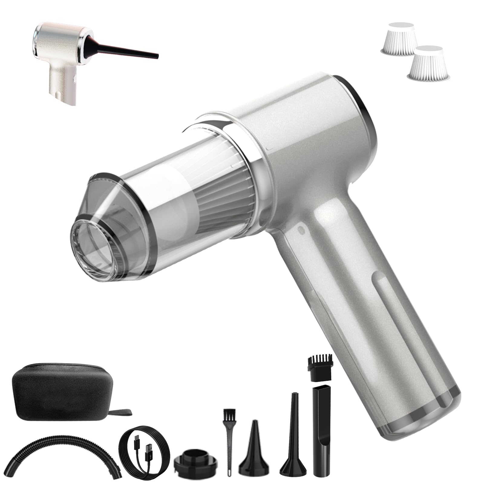 Brigii Mini aspiradora de mano inalámbrica, aspiradora 3 en 1 para automóvil, plumero de aire y bomba de mano, 3 tipos de boquilla