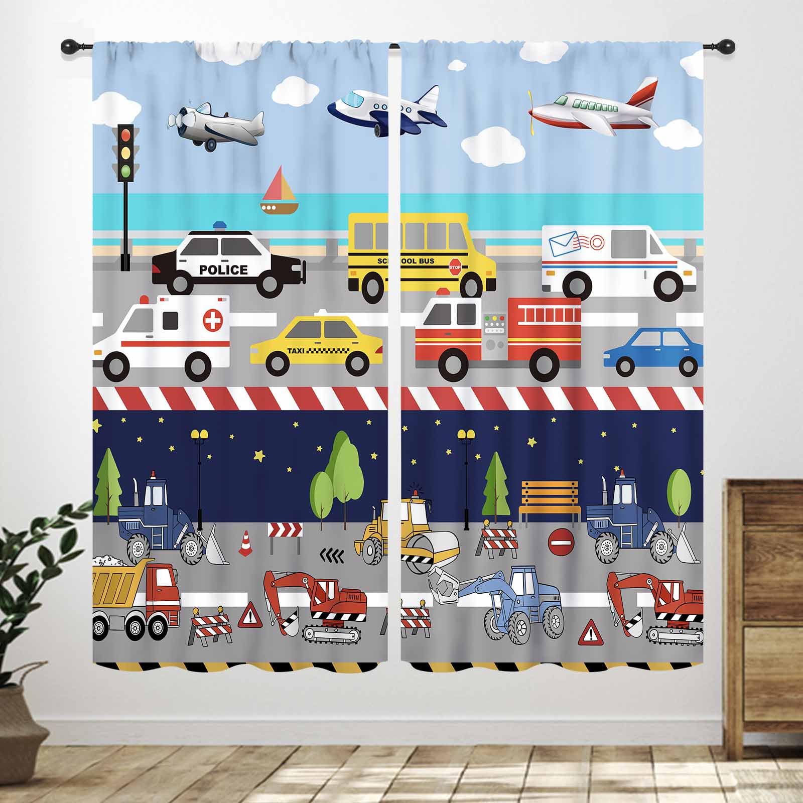 Cortinas de camión de tractor para dormitorio de niños, 42 pulgadas de ancho x 63 pulgadas de alto, bolsillo para barra, coche de