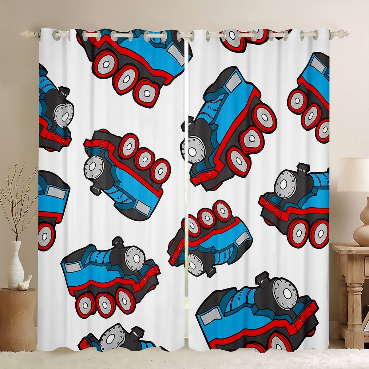Dreapes – Cortinas opacas de oscurecimiento de tren para niños, para dormitorio, sala de estar, decoración de viaje, cortinas opac