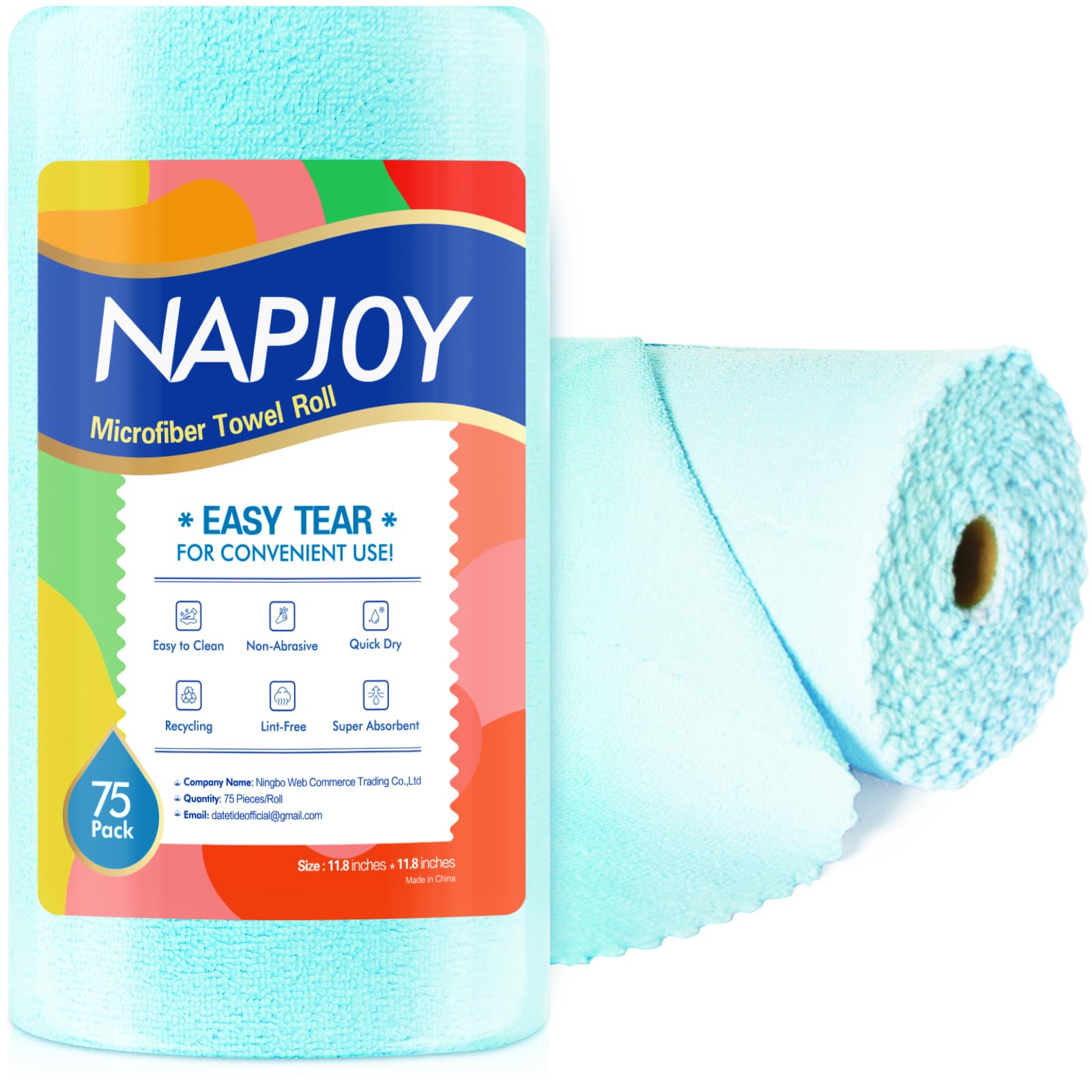 Napjoy Rollo de paño de limpieza de microfibra, paquete de 75 toallas de papel reutilizables fáciles de quitar, 12 x 12 pulgadas,