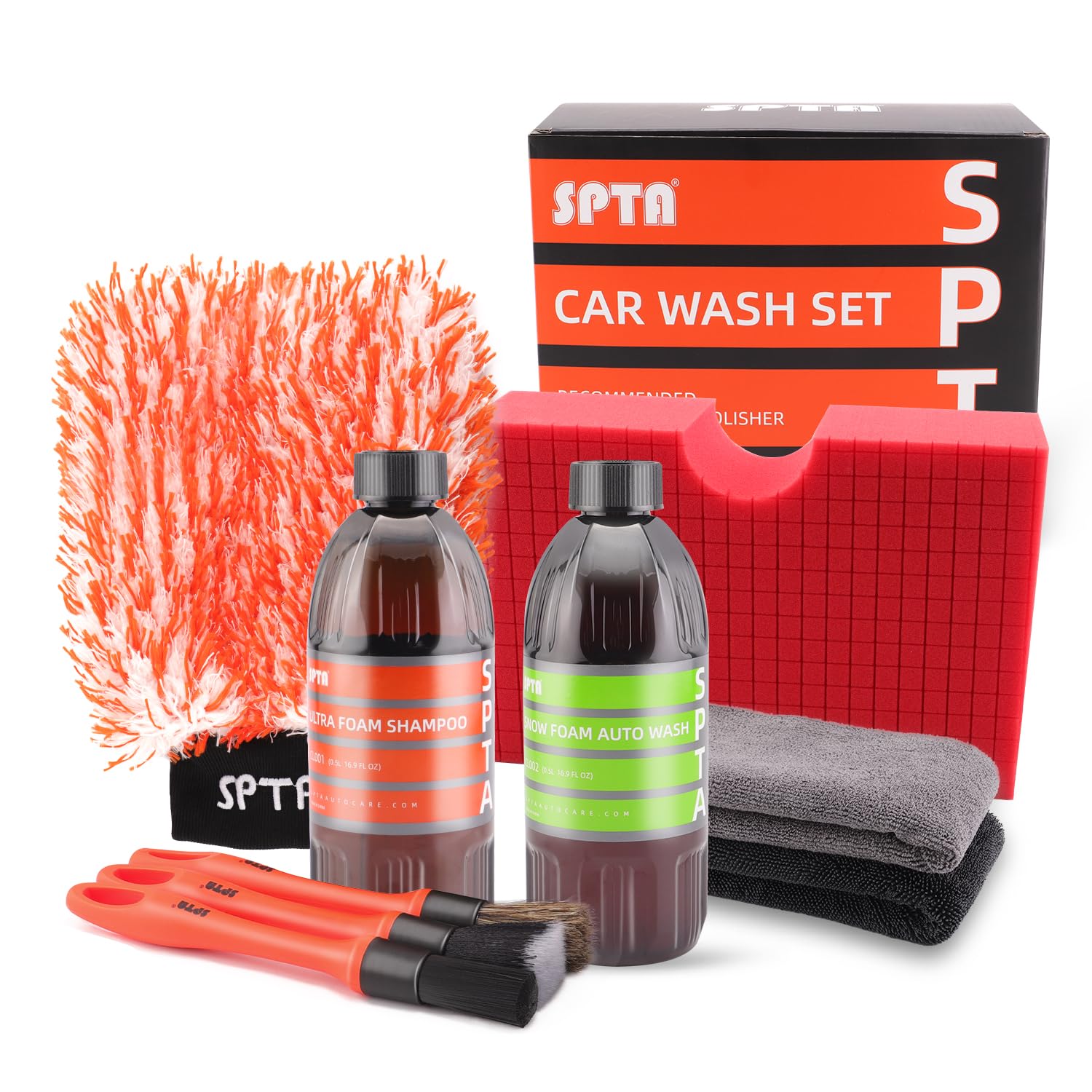 SPTA Kit de lavado de autos, kit de limpieza y lavado de autos (9 artículos, incluyendo champú de lavado de autos de 2 a 16 onzas,