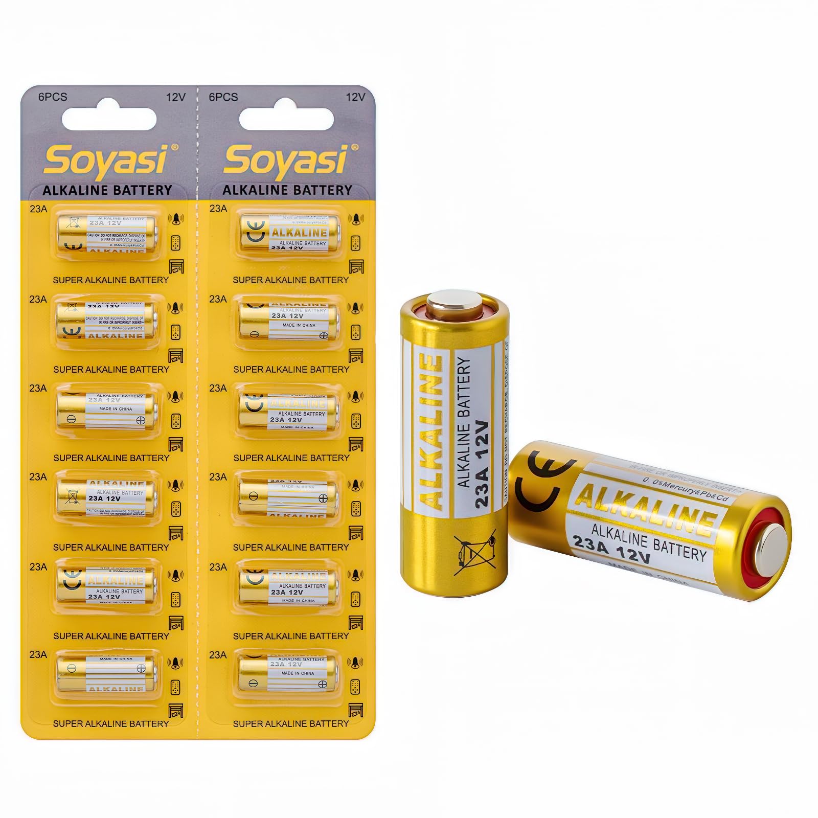 Batería alcalina de 23 A de 12 V, paquete de 12 unidades, batería alcalina de 21/23 de 12 voltios, larga duración para llaveros, a