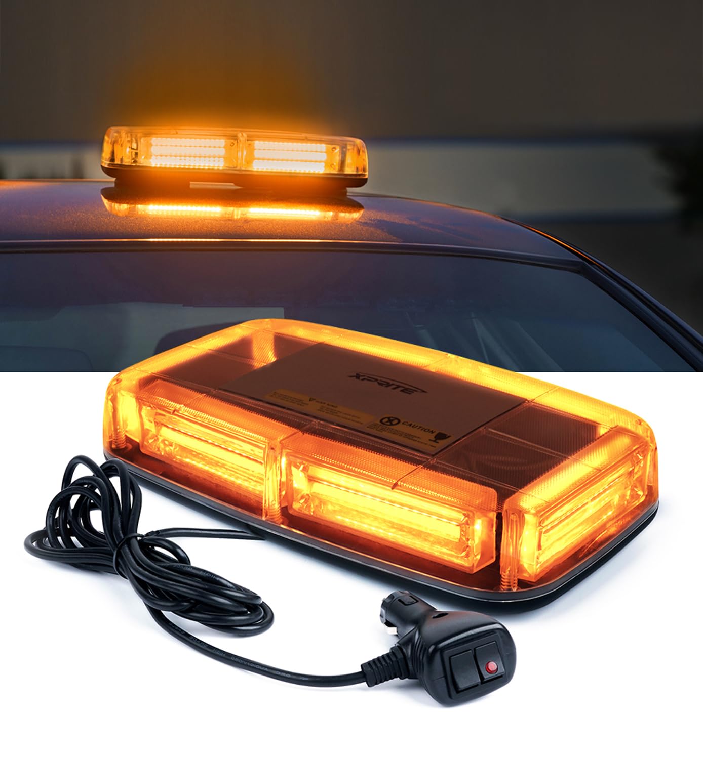 Xprite COB – Luces estroboscópicas LED ámbar para techo con base magnética, 19 patrones intermitentes, luz de advertencia de segur