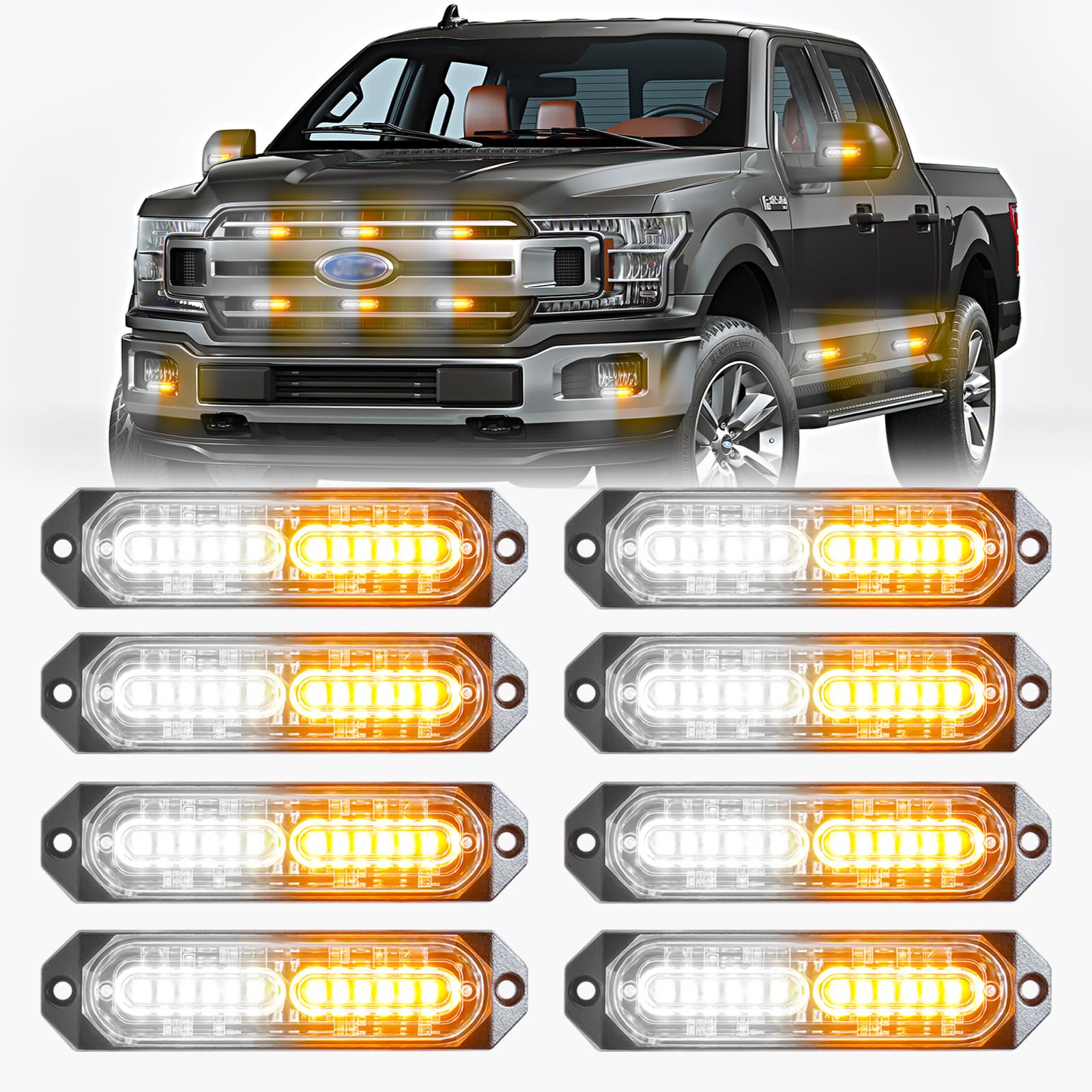 BooYu Luces estroboscópicas intermitentes de emergencia LED ámbar/blanco para camiones, vehículos, automóvil, función de sincroniz