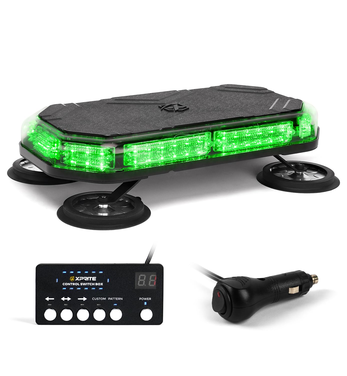 Xprite Barra de luz estroboscópica de emergencia verde en el techo, luces intermitentes de seguridad con panel de control, base ma