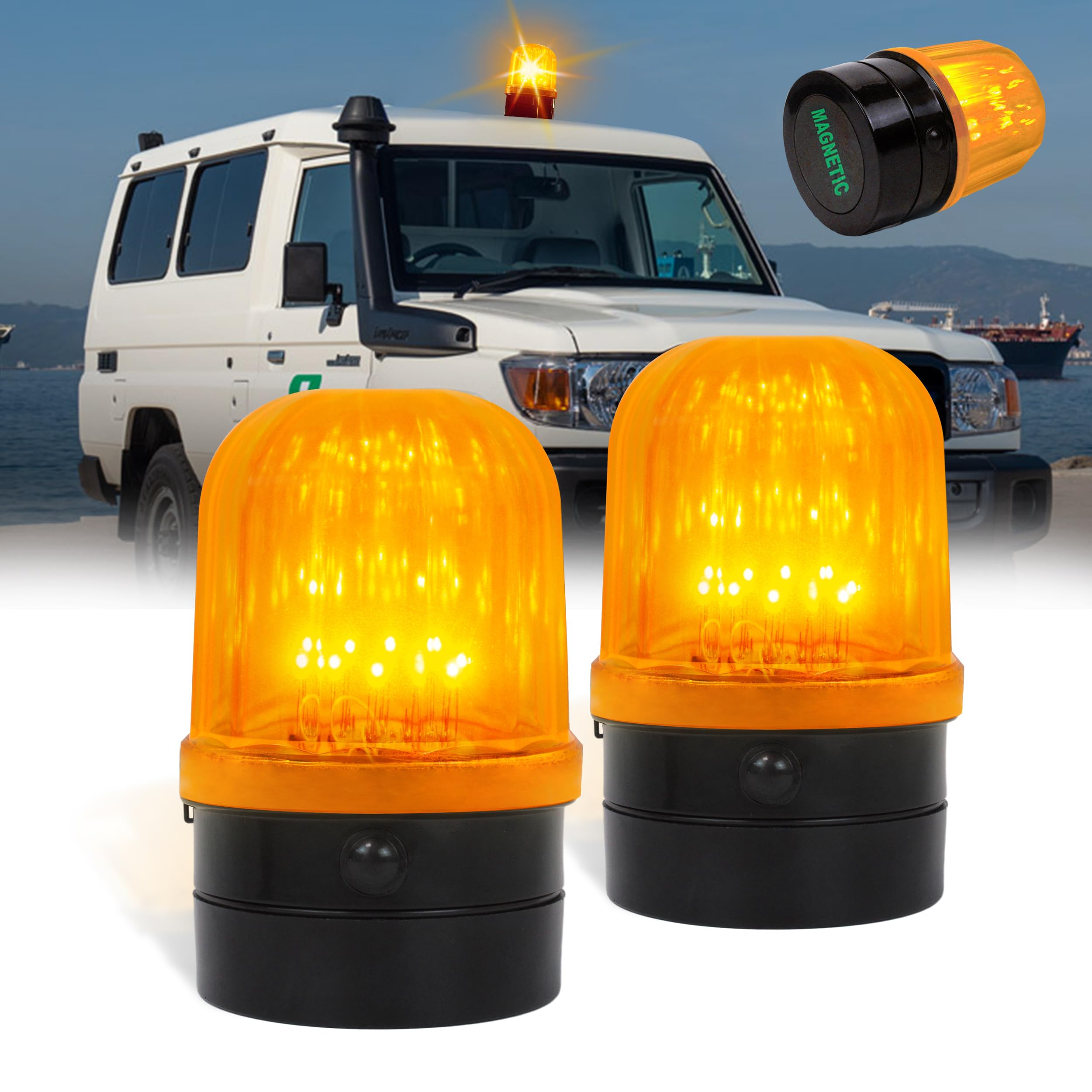 Luz de baliza magnética, luces estroboscópicas ámbar recargables de 12 V-24 V, IP65, impermeable, luz intermitente de emergencia p