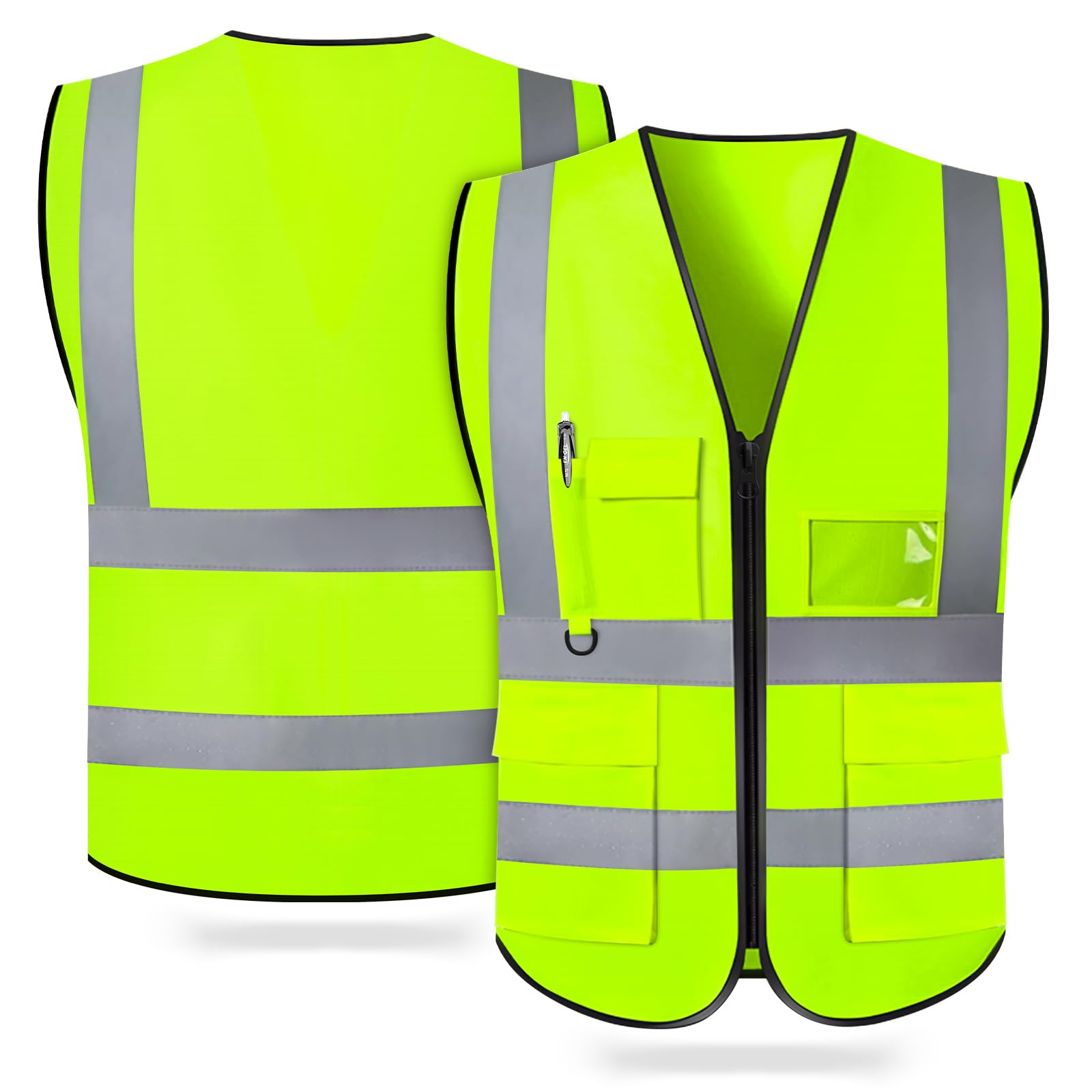 JZK Chaleco de seguridad de malla con bolsillos y cremallera, chaleco de malla de alta visibilidad, chaleco reflectante para hombr