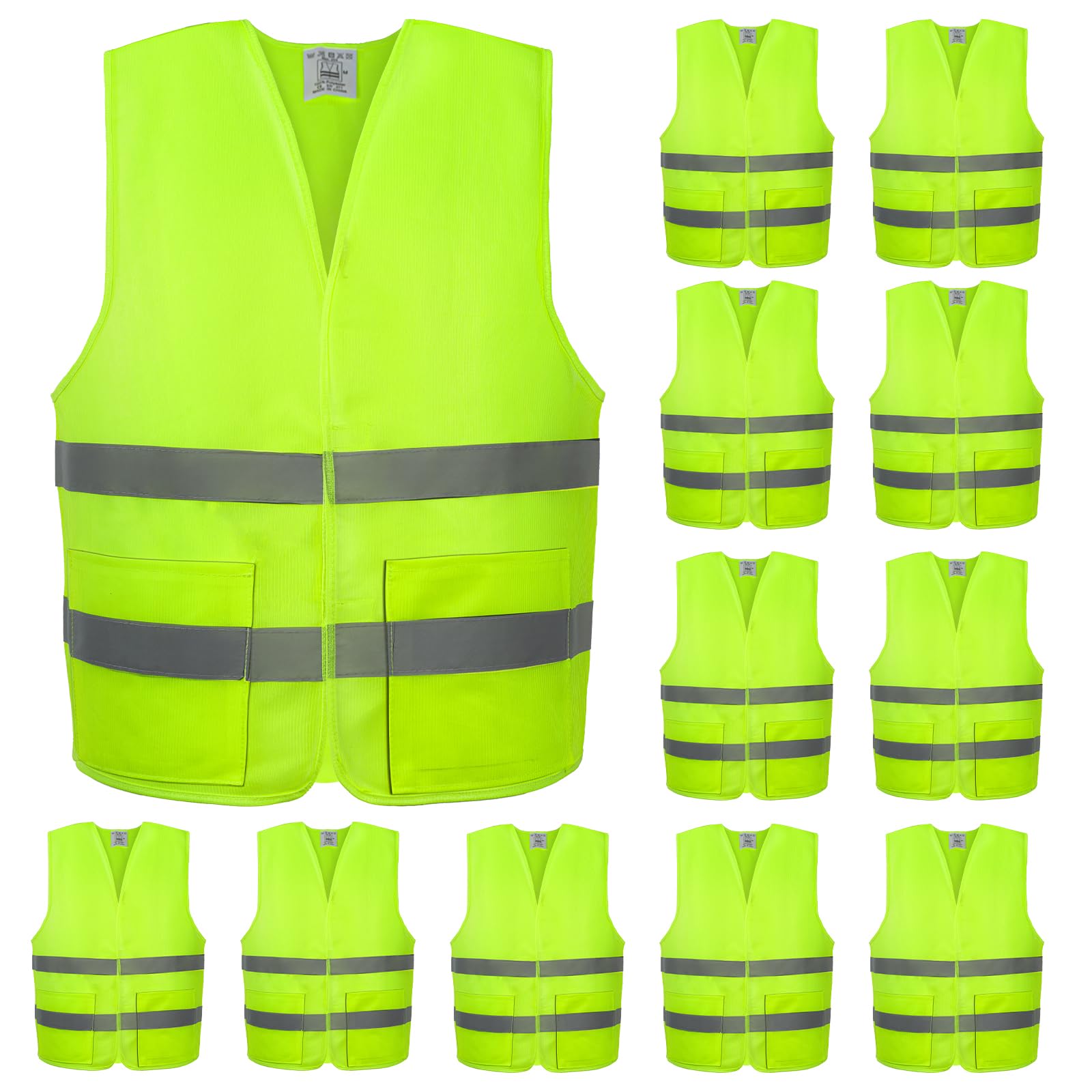VOCHIC Paquete de 12 chalecos de seguridad con bolsillos, reflectante de alta visibilidad, chaleco de malla Hi Vis para hombres/mu
