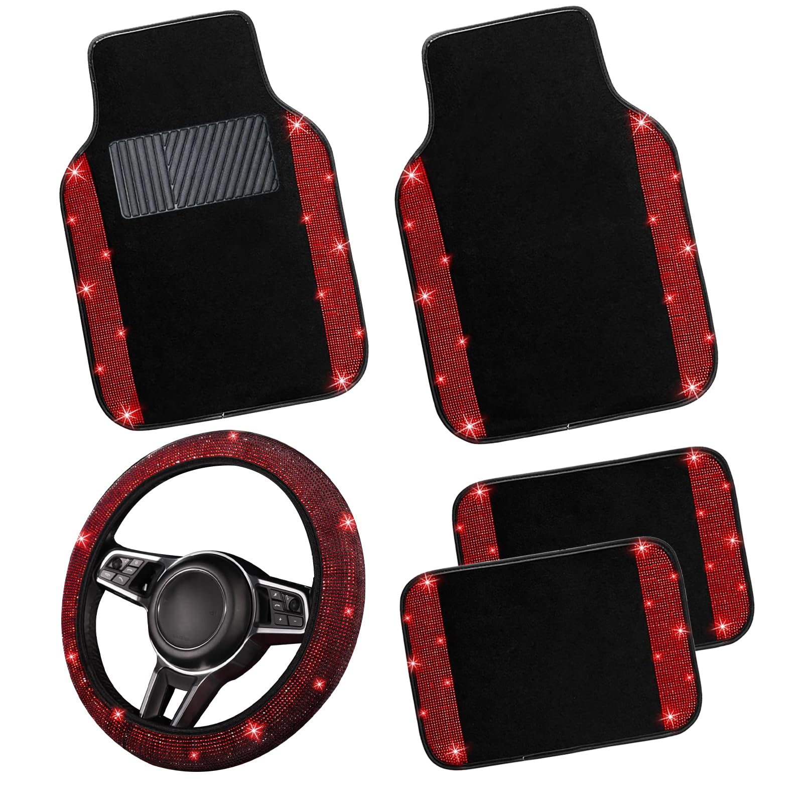 NBTEPEM Bling – Juego completo de alfombrillas para piso de automóvil y funda para volante, ajuste universal para la mayoría de lo
