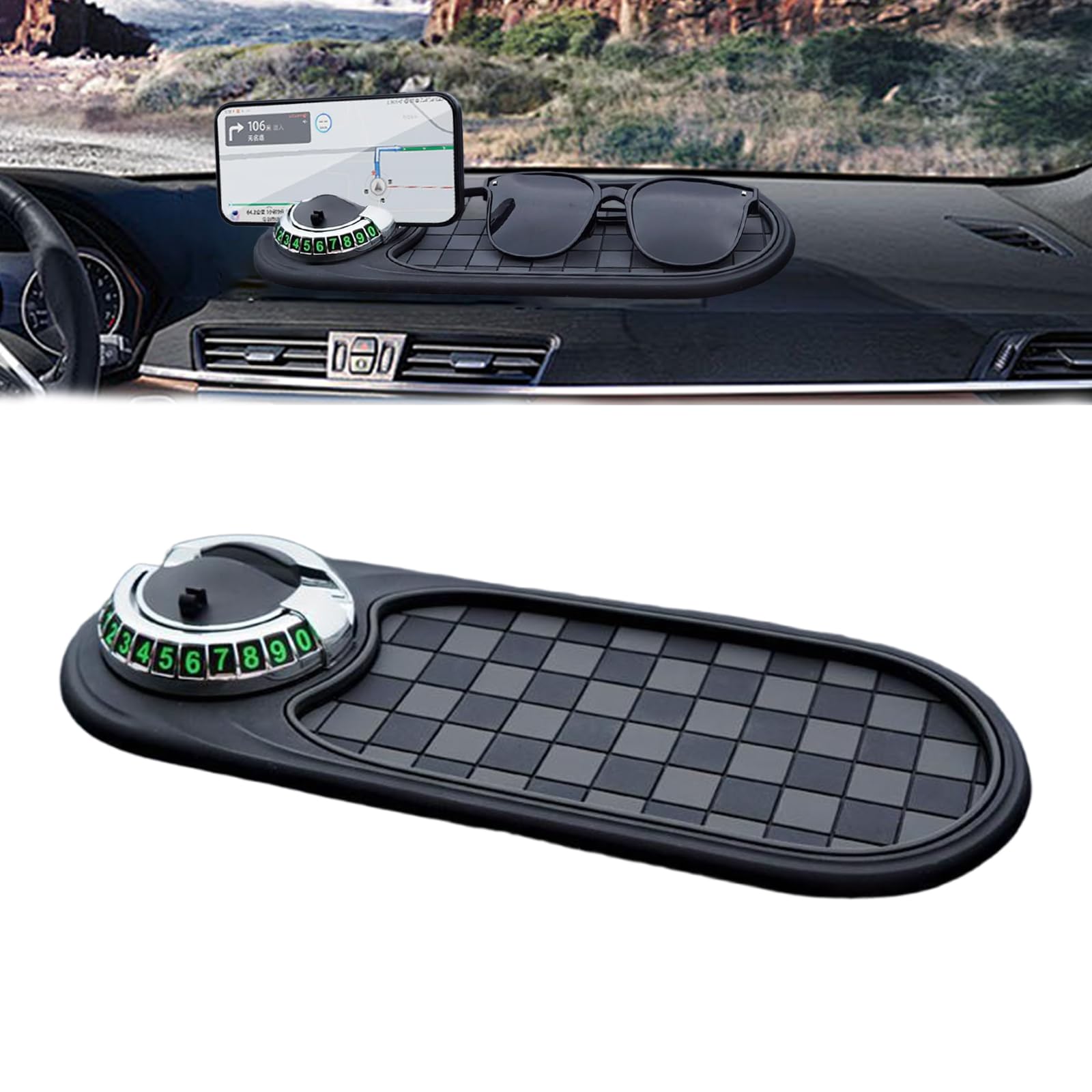 LivTee Alfombrilla antideslizante multifunción para automóvil, giratoria de 360°, soporte para teléfono móvil con número de estaci