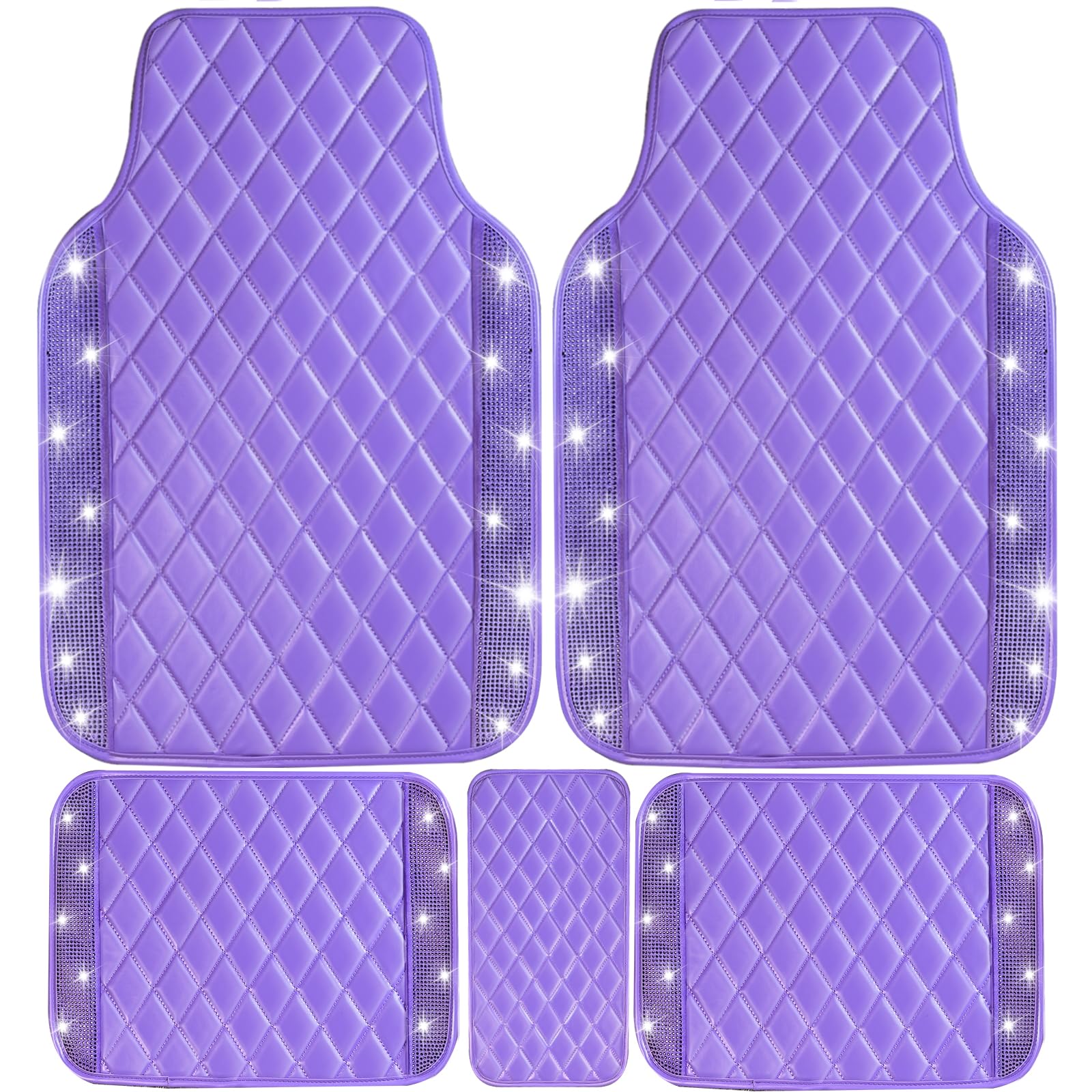 NBTEPEM Juego completo de tapetes de cuero con brillantes para automóvil, ajuste universal para la mayoría de automóviles, alfombr