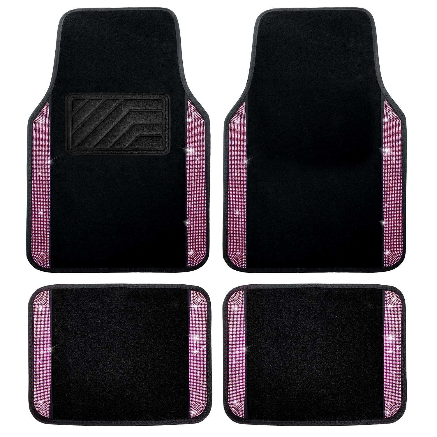 Alfombrillas de automóvil con diamantes brillantes, con purpurina brillante con almohadilla de talón de PVC antideslizante, imperm