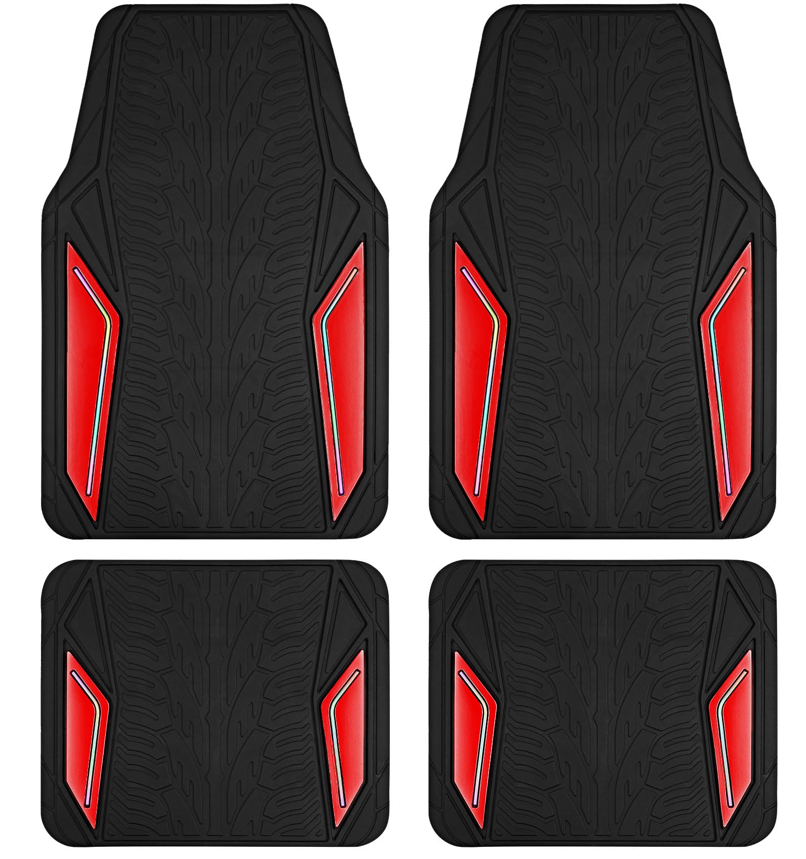 PIC AUTO Alfombrillas de goma, película de aluminio rojo con ribetes coloridos para automóviles, respaldo antideslizante, protecci