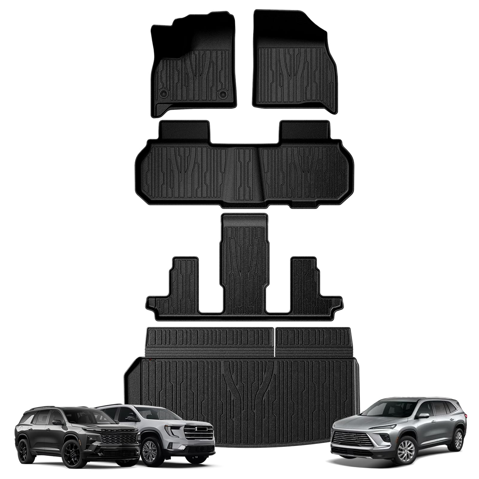 TripleAliners Alfombrillas y alfombrillas para maletero para todo tipo de clima, compatibles con GMC Acadia/Chevy Traverse 2024 +