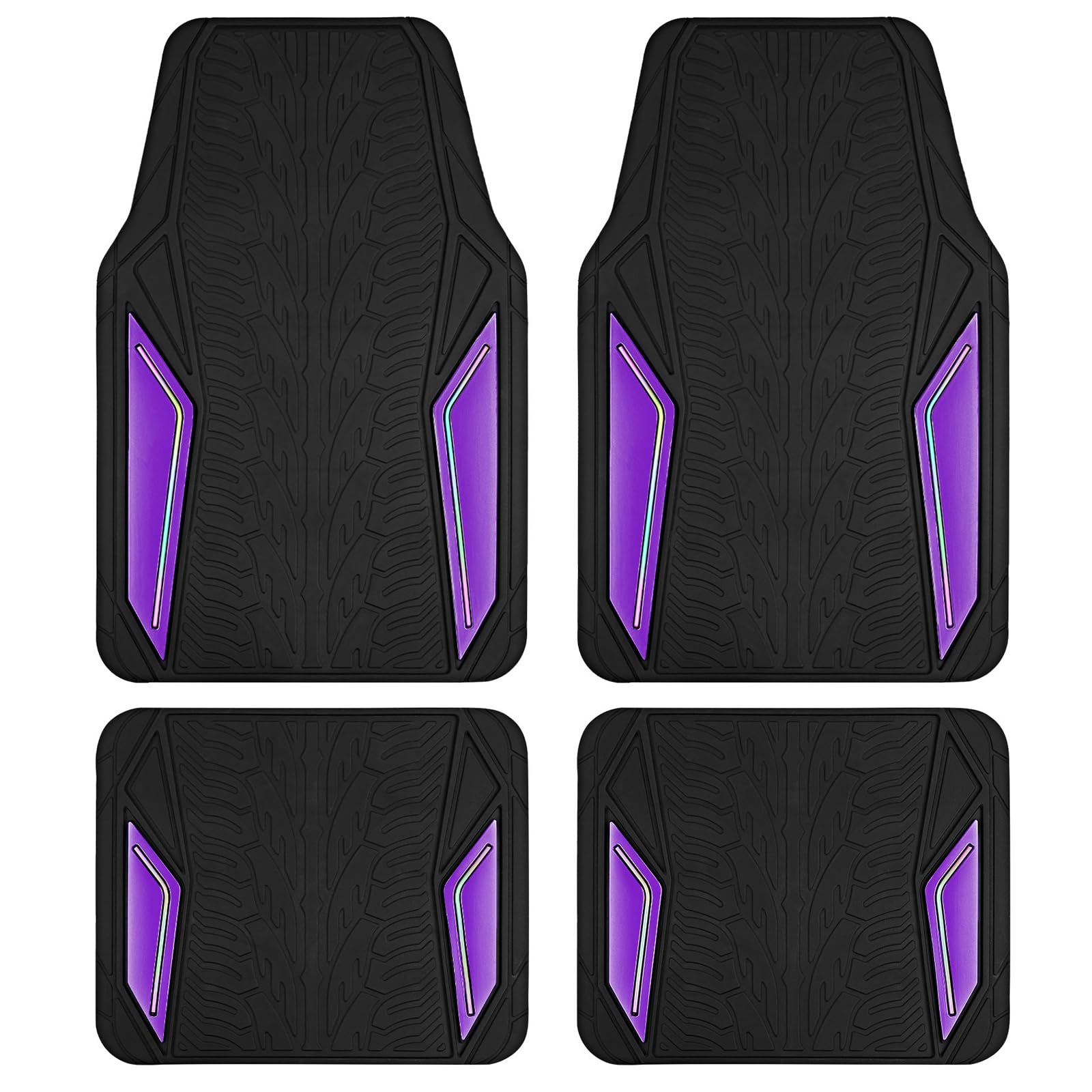 PIC AUTO Alfombrillas de goma, película de aluminio púrpura con ribetes coloridos para automóviles, respaldo antideslizante, prote