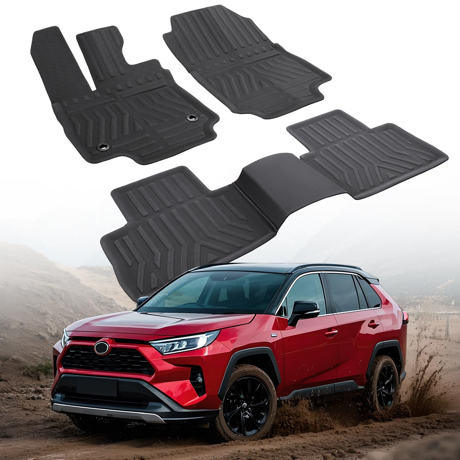 Alfombrillas de automóvil para Toyota RAV4: 2025 2024 2023 2022 2021 2020 2019, forros de goma para todo tipo de clima, ajuste per
