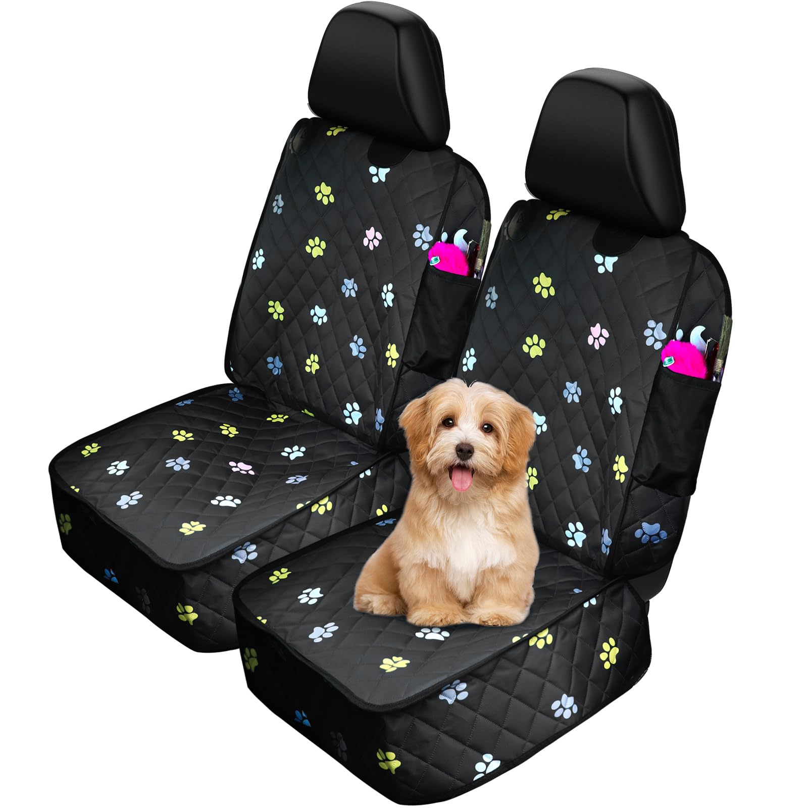 2 fundas de asiento de automóvil para perro para la parte delantera, duraderas huellas de colores, protector impermeable contra la