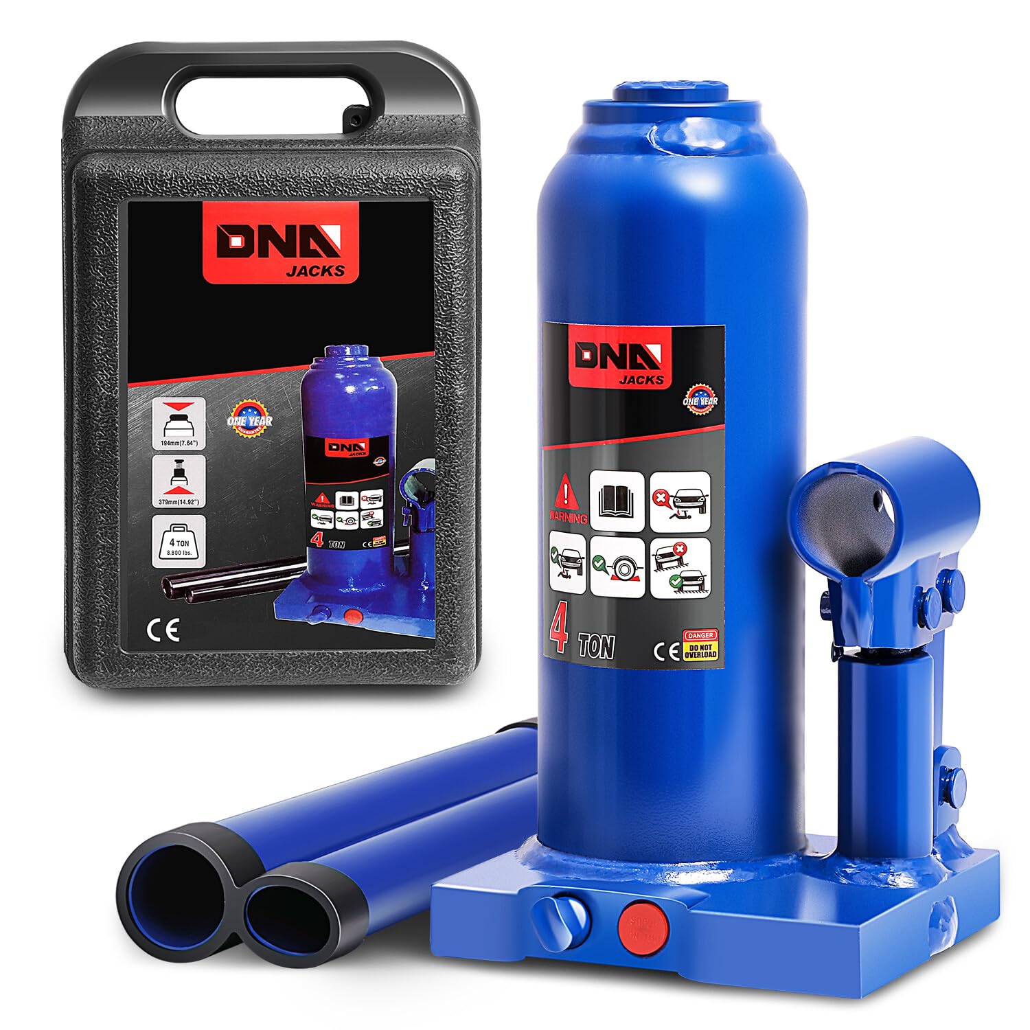 DNA MOTORING – Gato hidráulico de botella soldado automotriz, 4 toneladas, para reparación de vehículos, camionetas, camiones, con