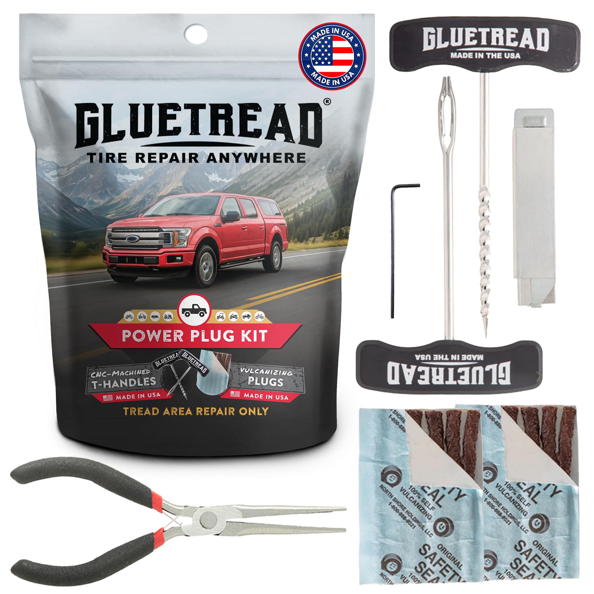 GlueTread – Kit de tapones para neumáticos de carretera, kit de reparación de neumáticos con enchufes, mango en T mecanizado CNC,