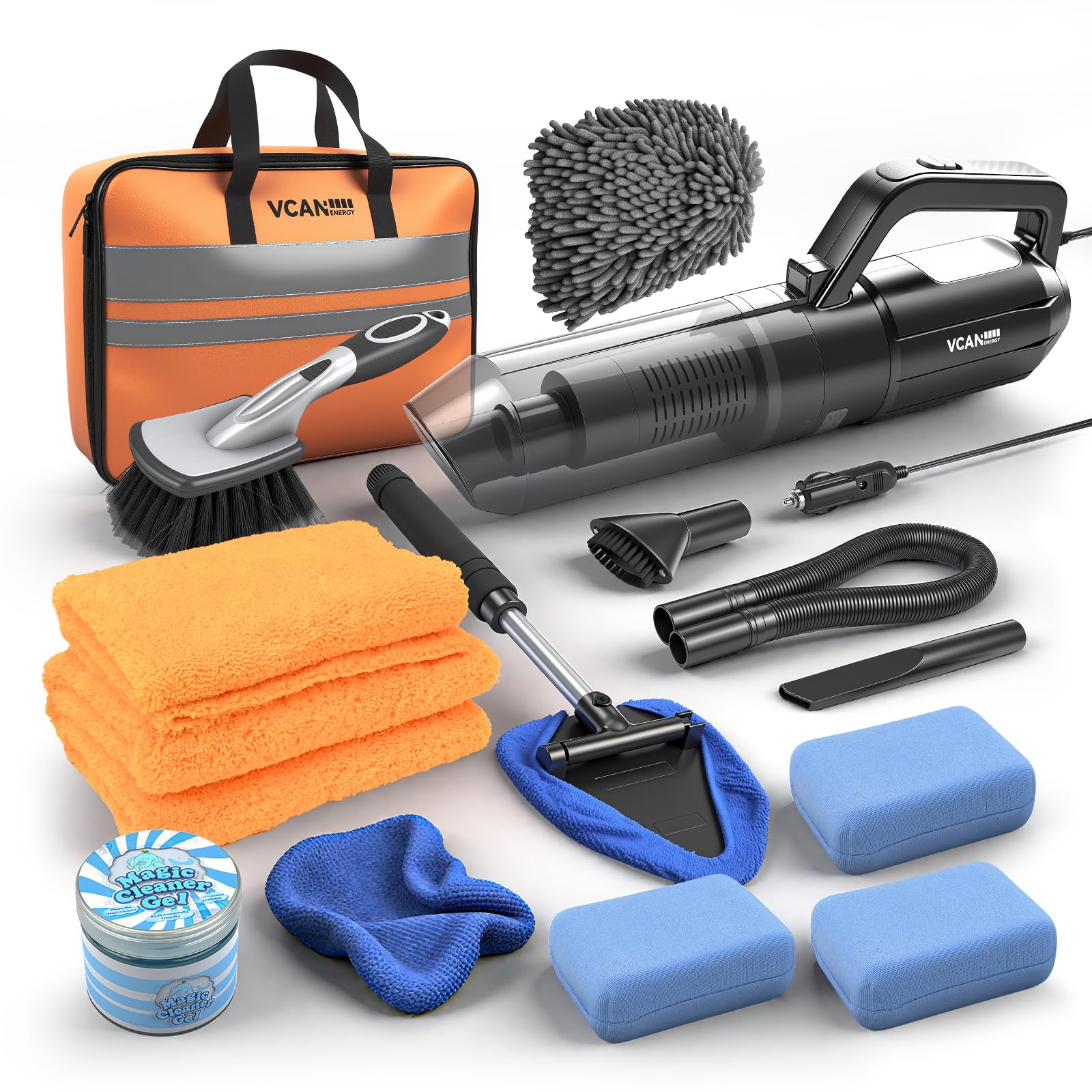 Kit completo de 17 piezas para detalles interiores de automóvil con aspiradora de mano de alta potencia, kit de limpieza para el c