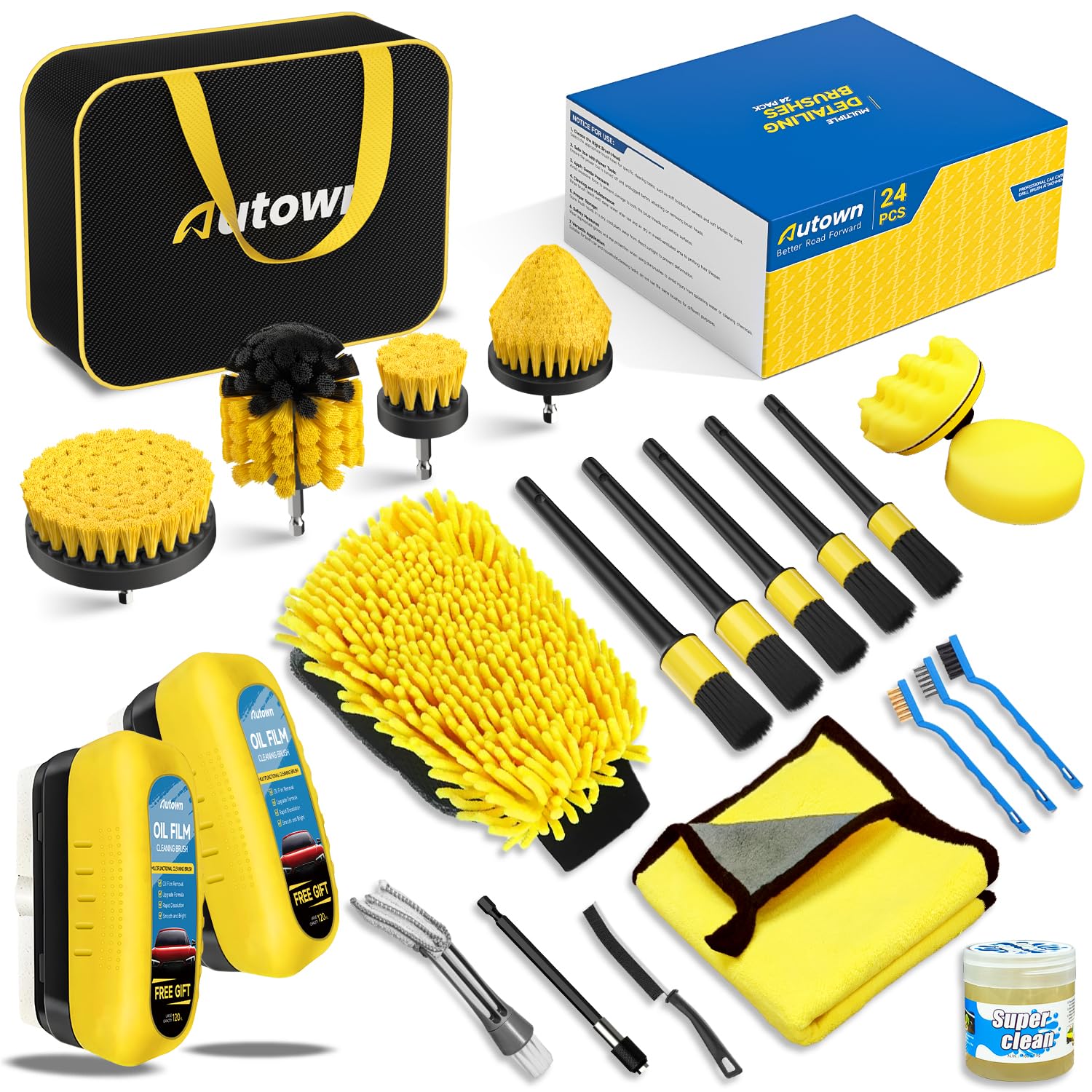 AUTODECO 22Pcs Car Wash Cleaning Tools Kit Car Detailing Set with Blue Canvas Bag Collapsible Bucket Wash Mitt Sponge Towels Tire