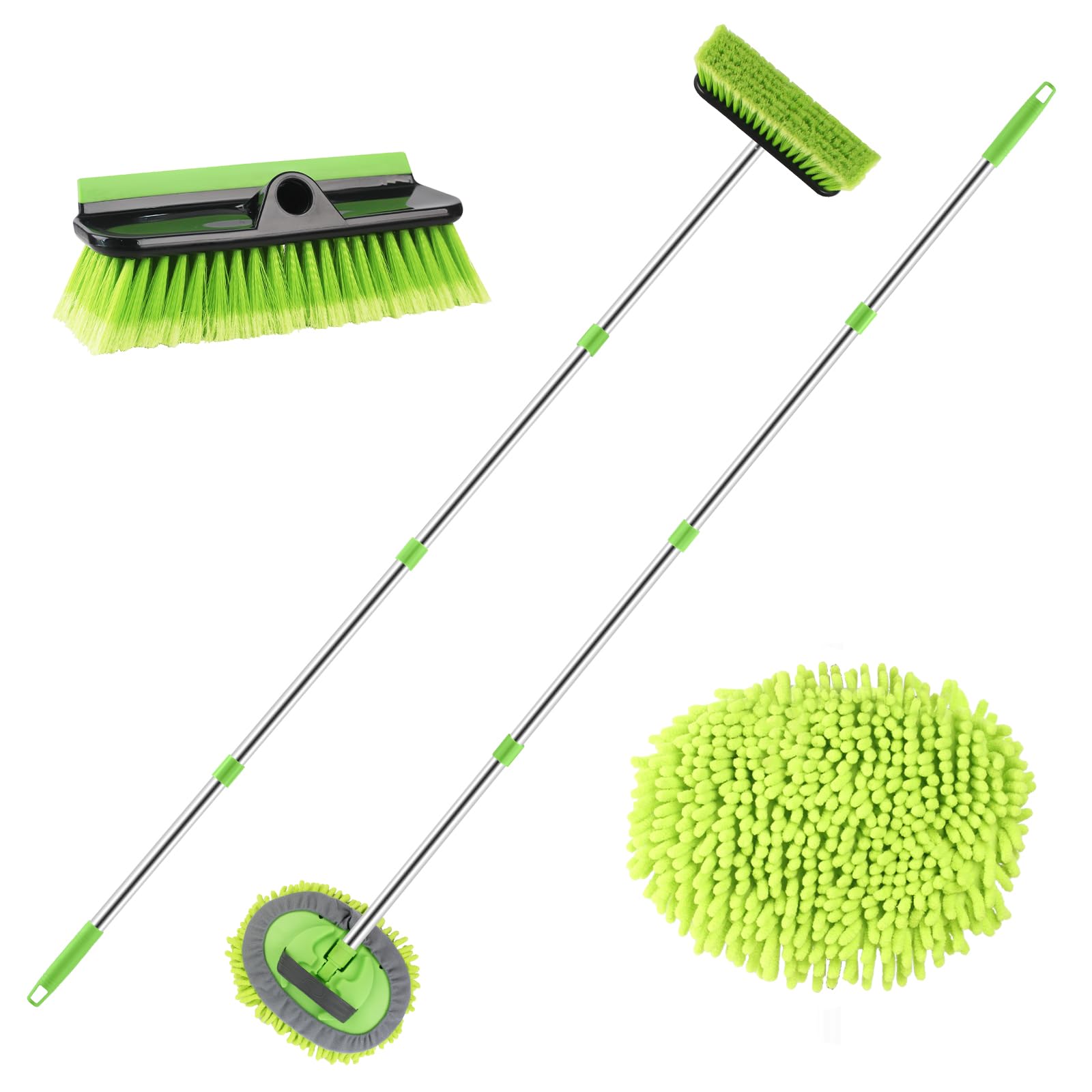 Paquete de 2 cepillos de lavado de autos con mango largo, juego combinado de microfibra de 61 pulgadas para lavado de autos y cepi