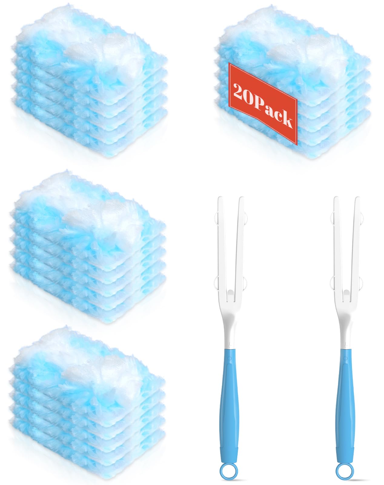 Recambios de plumero compatibles con Swiffer Heavy Duty Duster Recambio, 2 mangos+20 plumeros para kit de plumero Swiffer, plumero