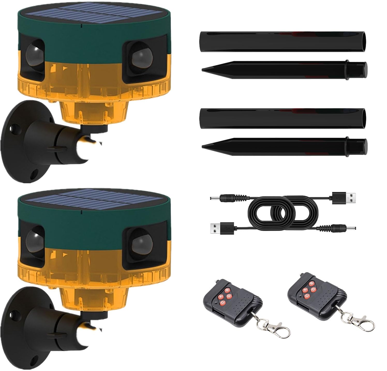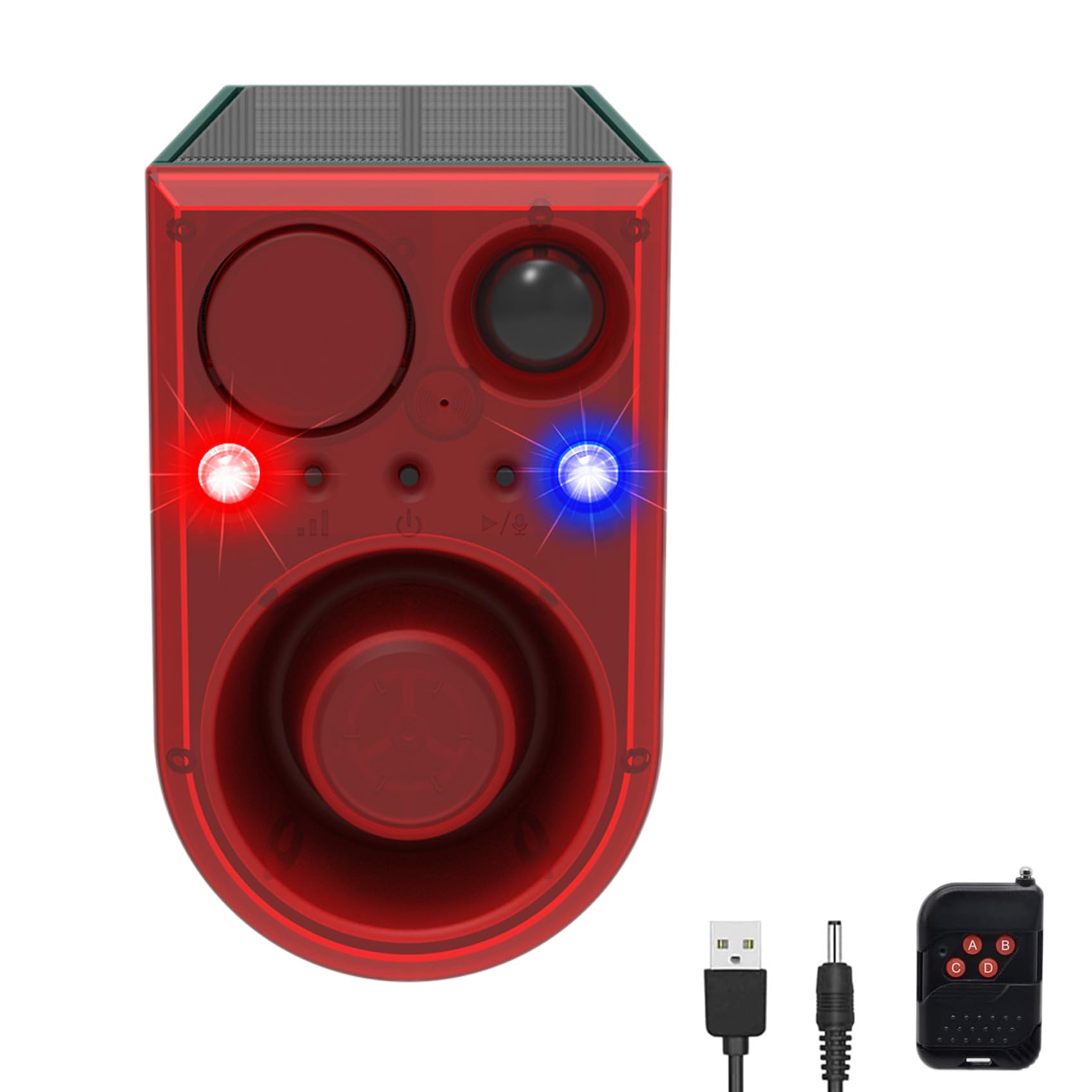 Qualirey Alarma solar con sensor de movimiento para exteriores, 2 x 129 db, generador de ruido fuerte, 13 detectores de sonido, lu