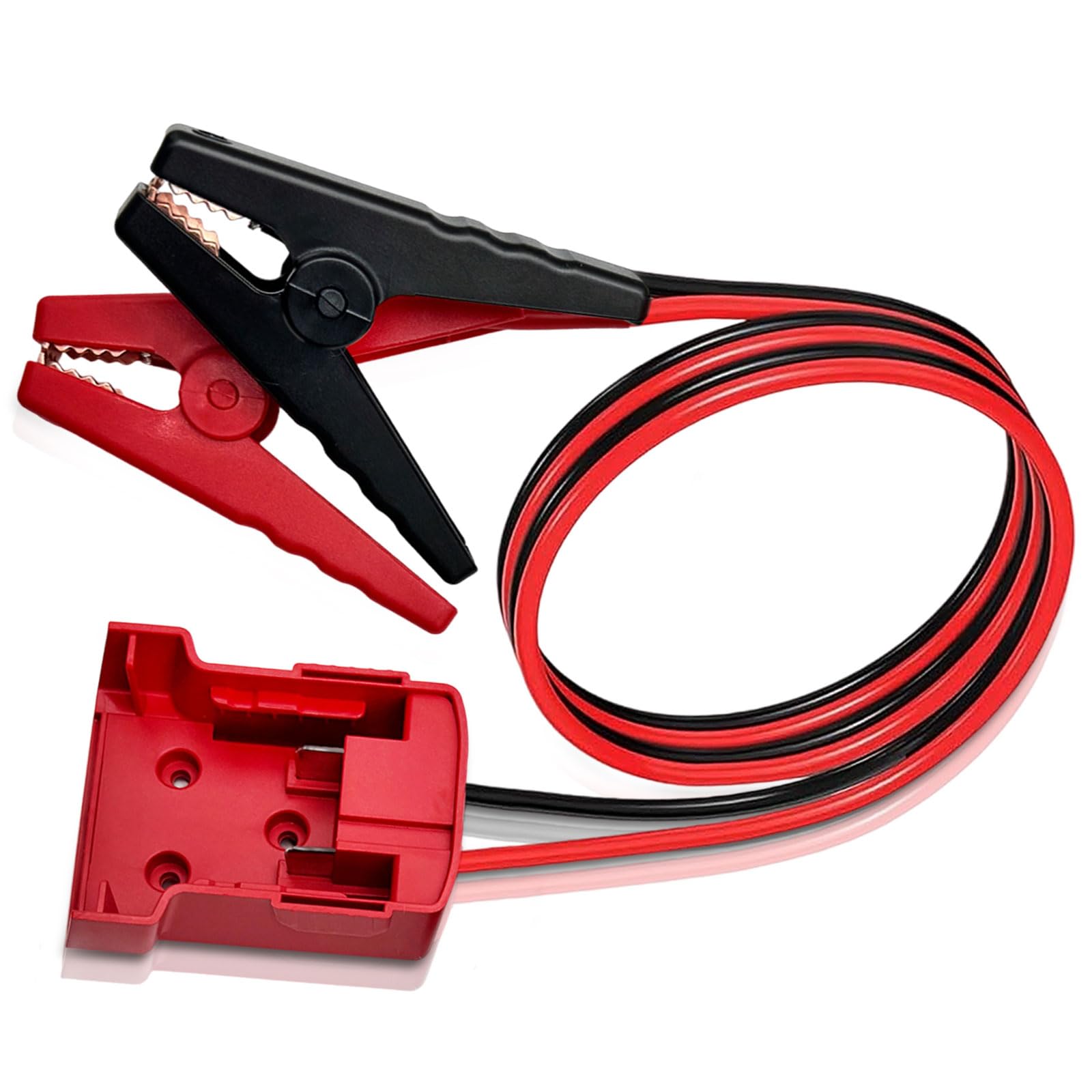 Adaptador de cables de puente con clips de cocodrilo compatible con batería Milwaukee M18 de 18 V, abrazaderas de arranque de cabl