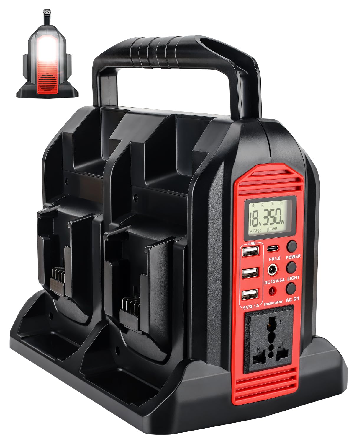 Taingwei Inversor de corriente de 350 W para batería Milwaukee M18 de 18 V, 4 puertos CC 18 V a CA 110-120 V, inversor de batería