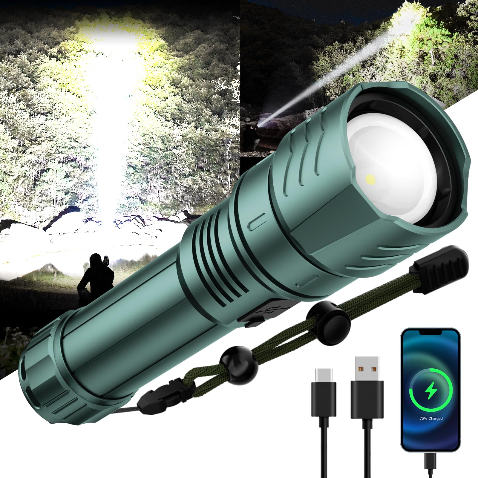 SKYFIRE Linternas recargables de 15000.00 lm de alto lúmenes, linterna LED súper brillante, zoom, banco de energía cuatro modos, l