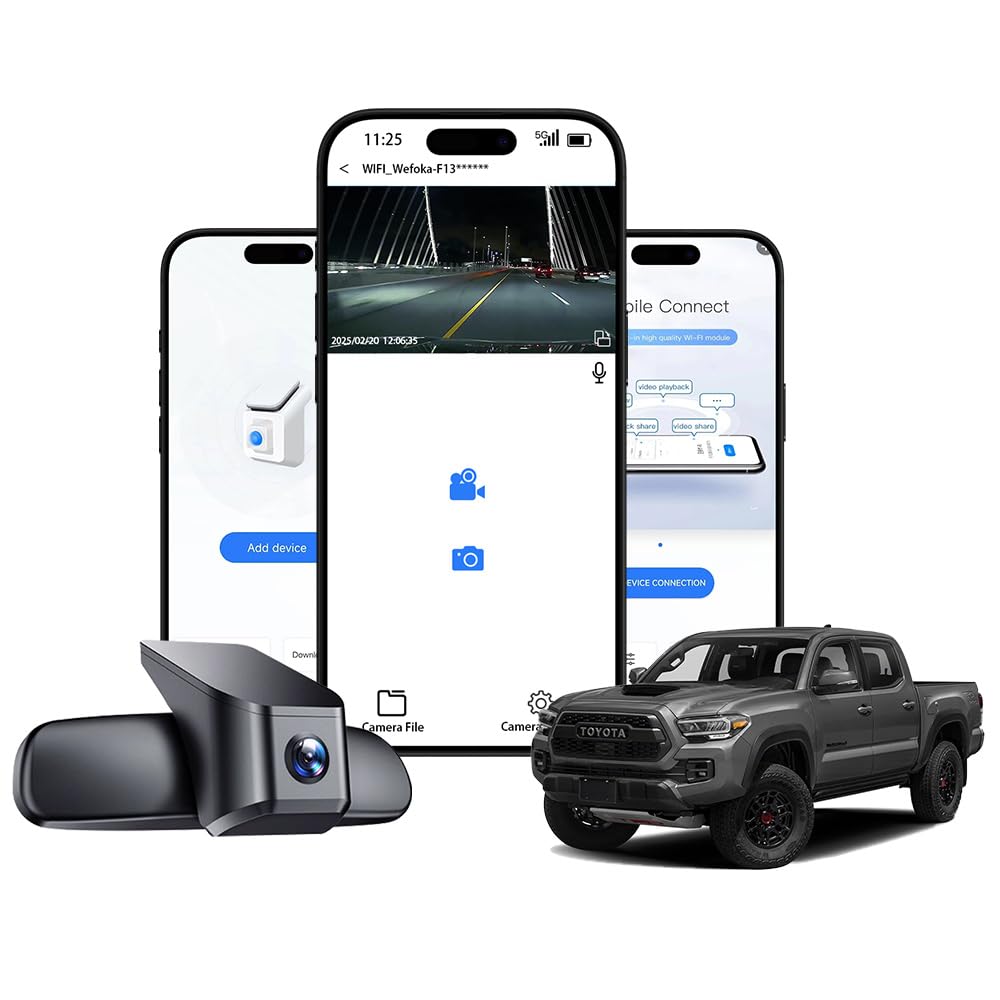 4K Dash Cam Suitable for Toyota Tacoma 2024-2025 SR SR5 TRD Sport Pre-Runner Off Road Limited & Tacoma Hybrid, OEM Look, UHD 2160P