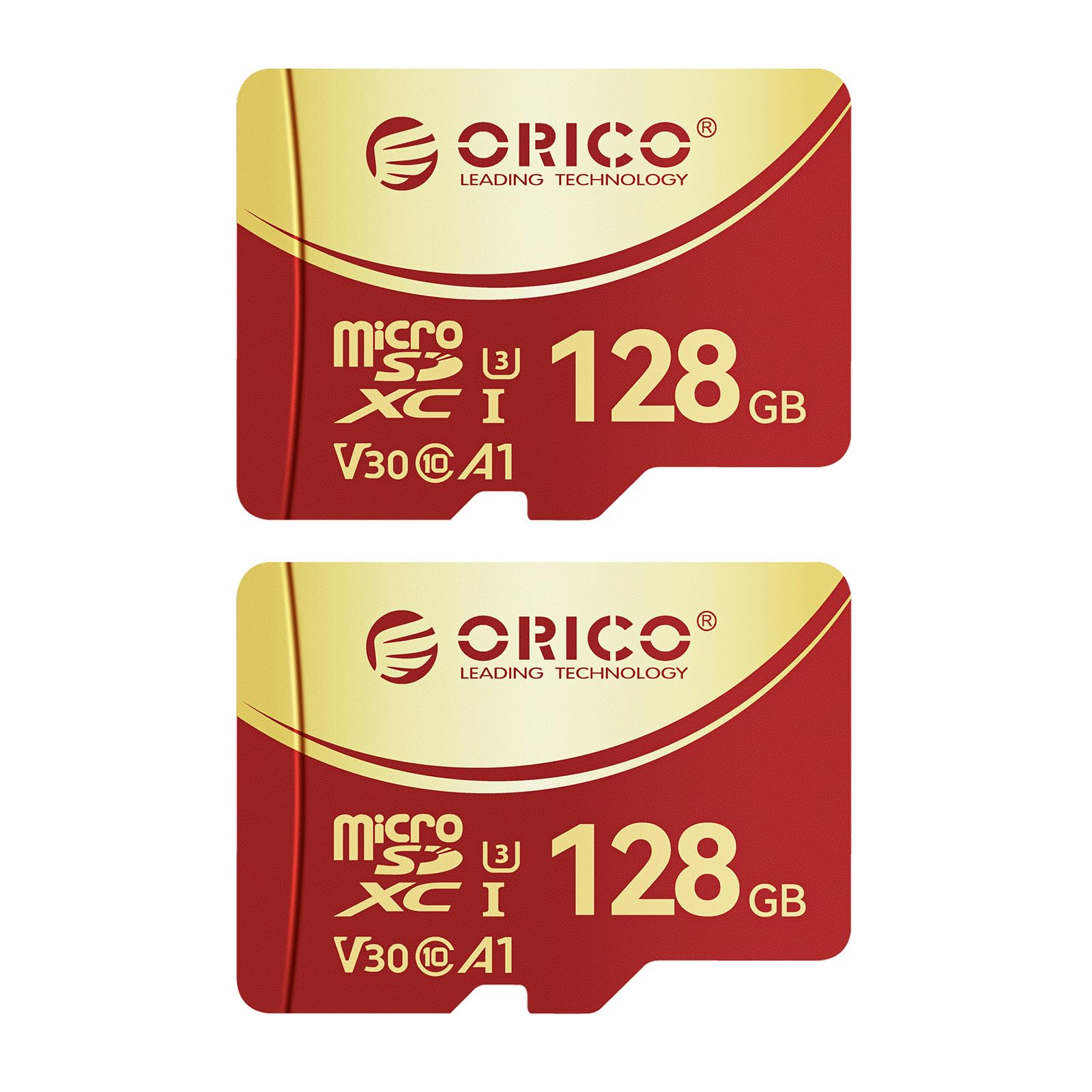 ORICO Tarjeta de memoria microSDXC UHS-I de 128 GB (2 paquetes), 100 MB/s, reproducción 4K UHD, U3, Class10, V30, A1, Micro SD par