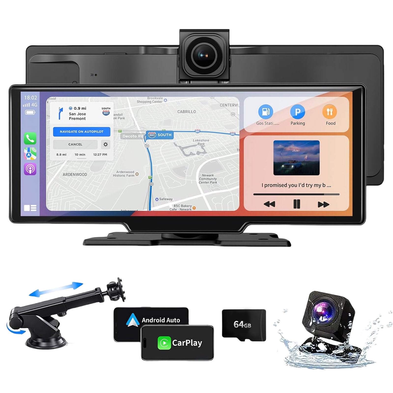 Pantalla estéreo inalámbrica CarPlay para automóvil con cámara de tablero 4K, Apple Carplay de 10.26 pulgadas y pantalla Android A