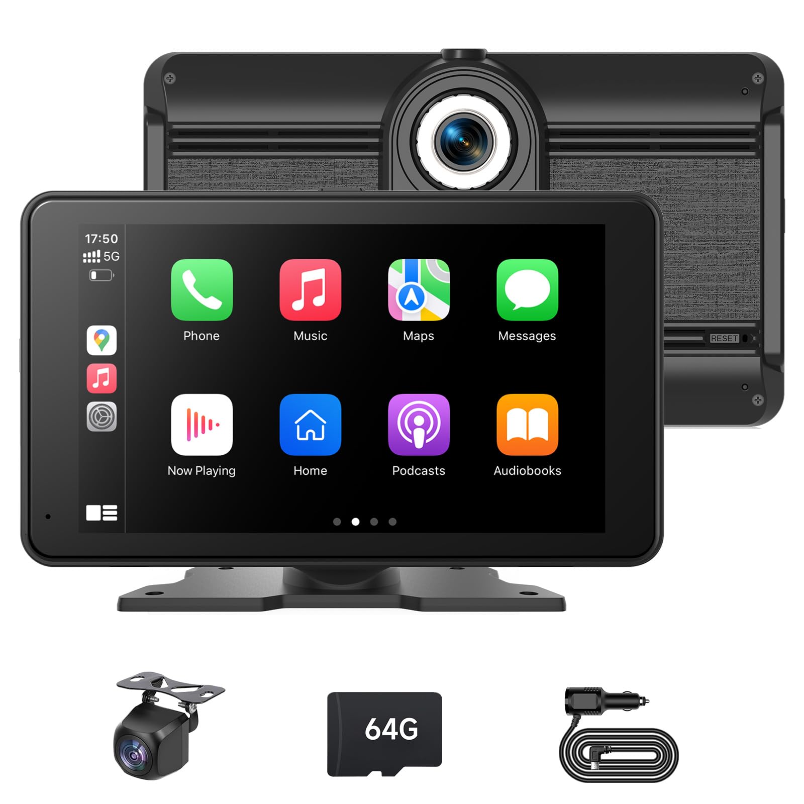 Pantalla Carplay HD de 7 pulgadas para automóvil, cámara de tablero de 2.5 K con cámara de respaldo de 1080p, DVR, receptores de a