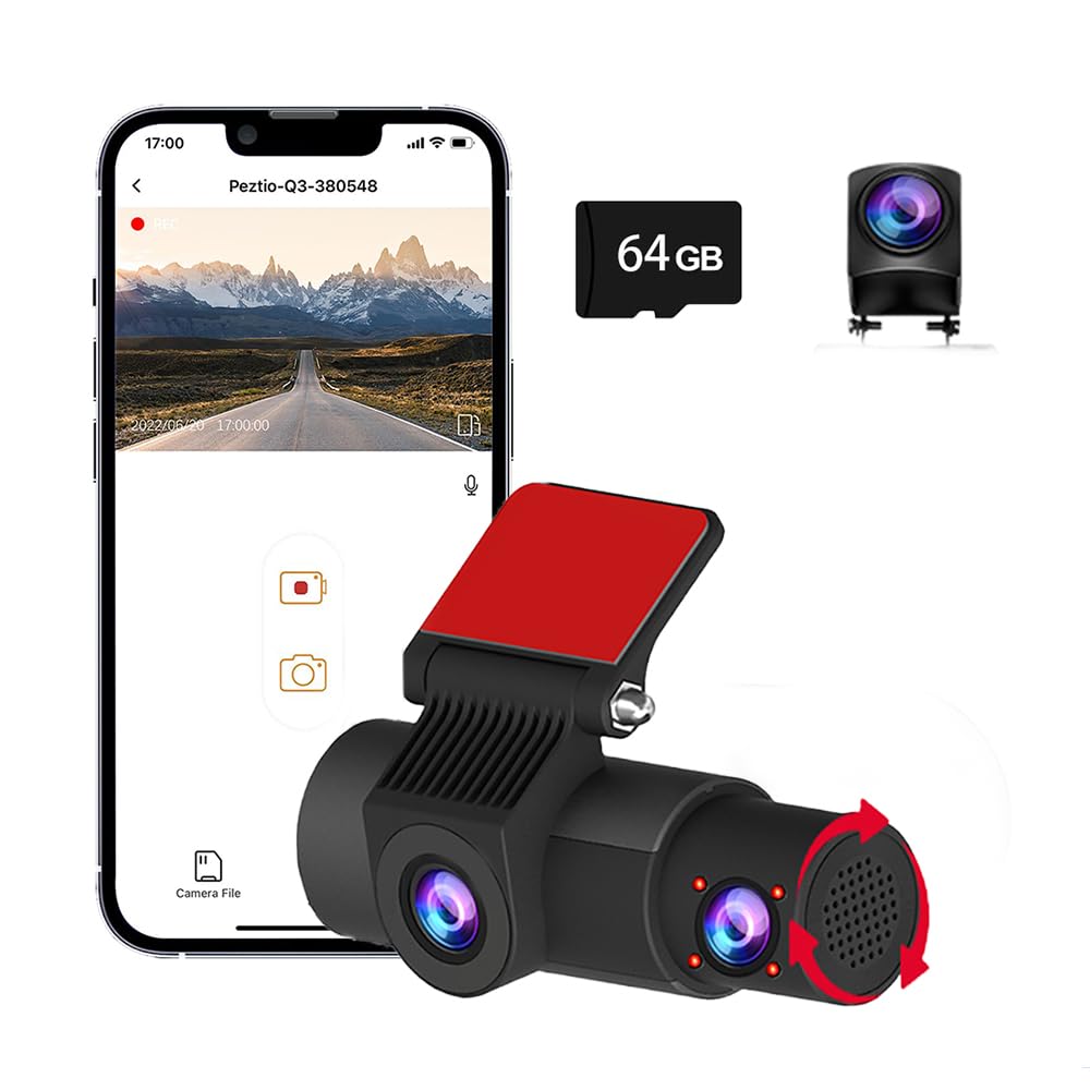 Kingslim Cámara de tablero WiFi 5G de 3 canales con tarjeta de 64 GB, 2.5K/1080P frontal y trasera interior Dashcam, 2.5K/1080P/10