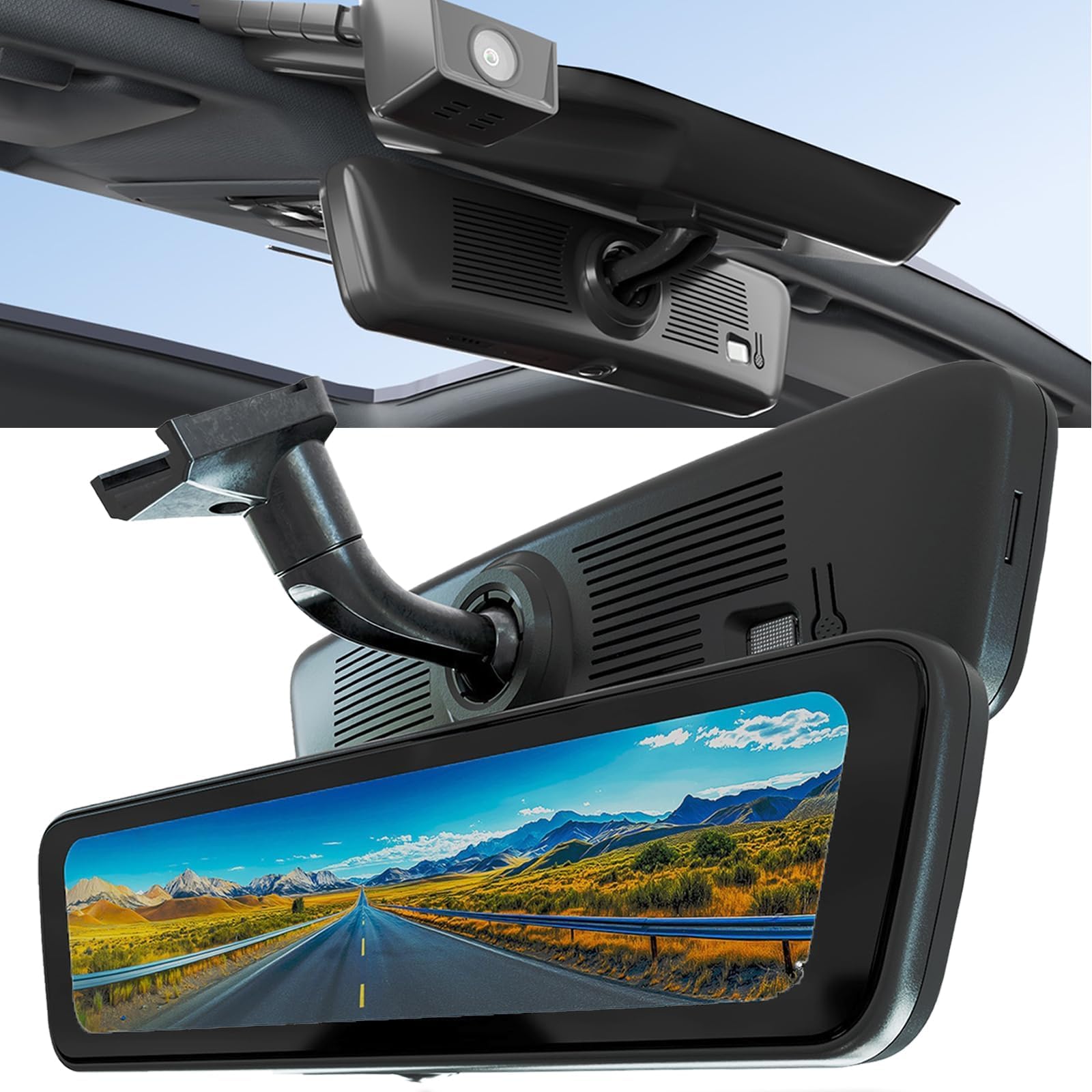 NHOPEEW Cámara de espejo retrovisor de doble lente 4K – Espejo con pantalla táctil de 9.66 pulgadas para salpicadero delantero y t