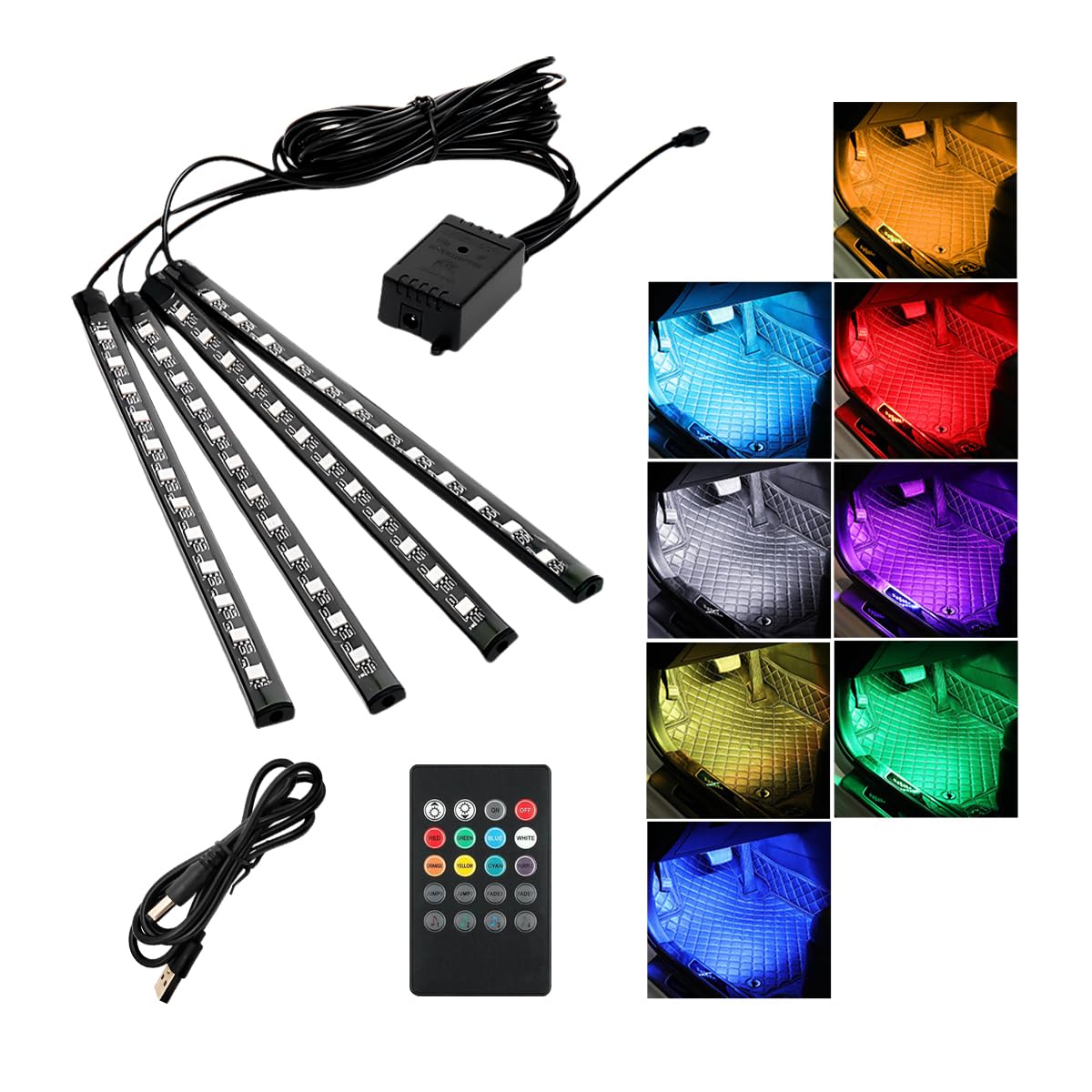 Mega Racer Luces RGB para interiores de automóvil, tira de luces LED para automóvil, 48 LED de más de 16 millones de colores, apli