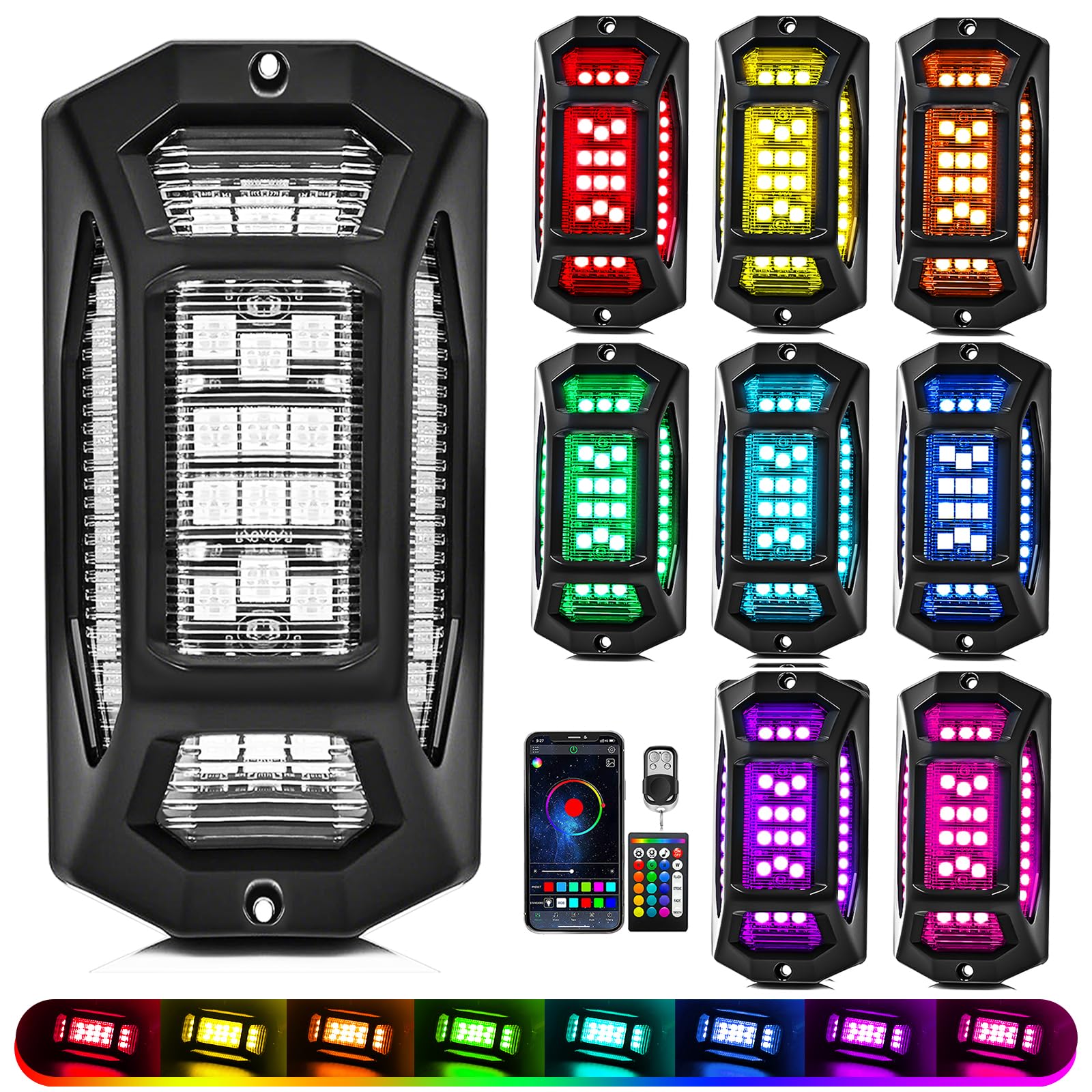 Luces de roca para camiones, kit de 4 cápsulas LED RGB con control remoto APP/RF y modo de música, ángulo completo impermeable par