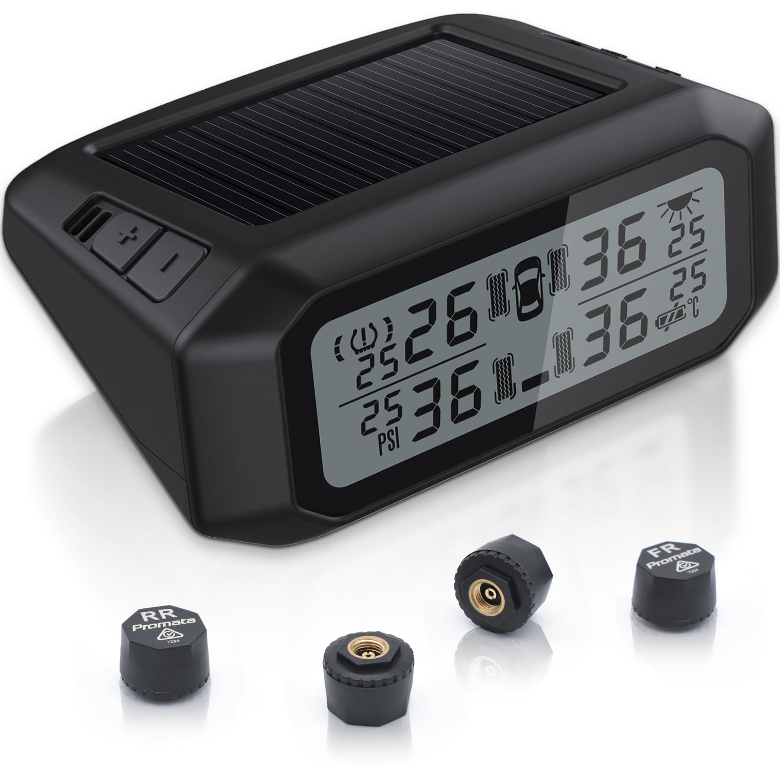 Promata Sistema de monitoreo de presión de neumáticos RV (0-99 PSI), TPMS solar inalámbrico resistente al calor con 4 sensores y 6