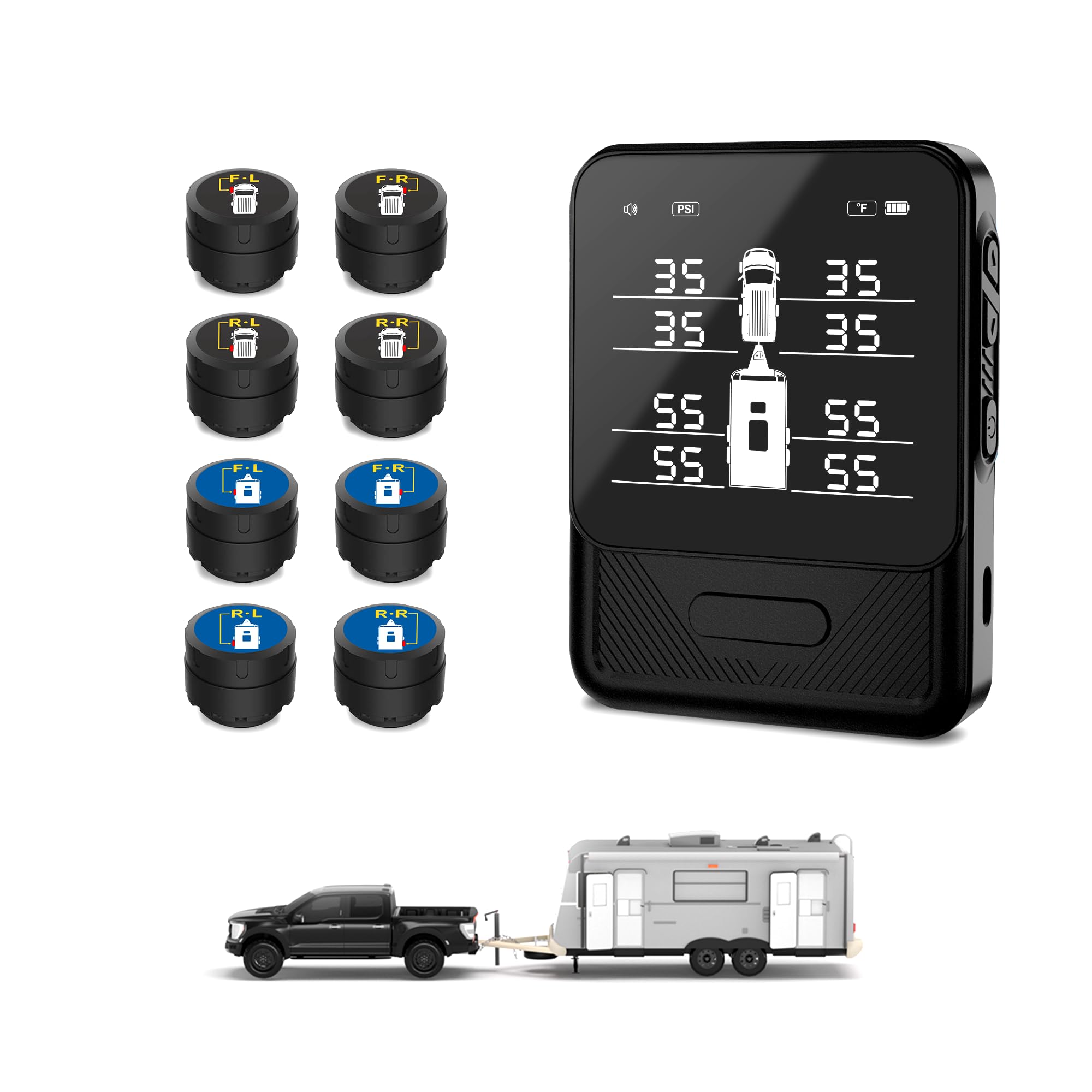 Sistema de monitoreo de presión de neumáticos, TPMS para RV con pantalla LED a color, TPMS de remolque con 4 sensores y 6 modos de