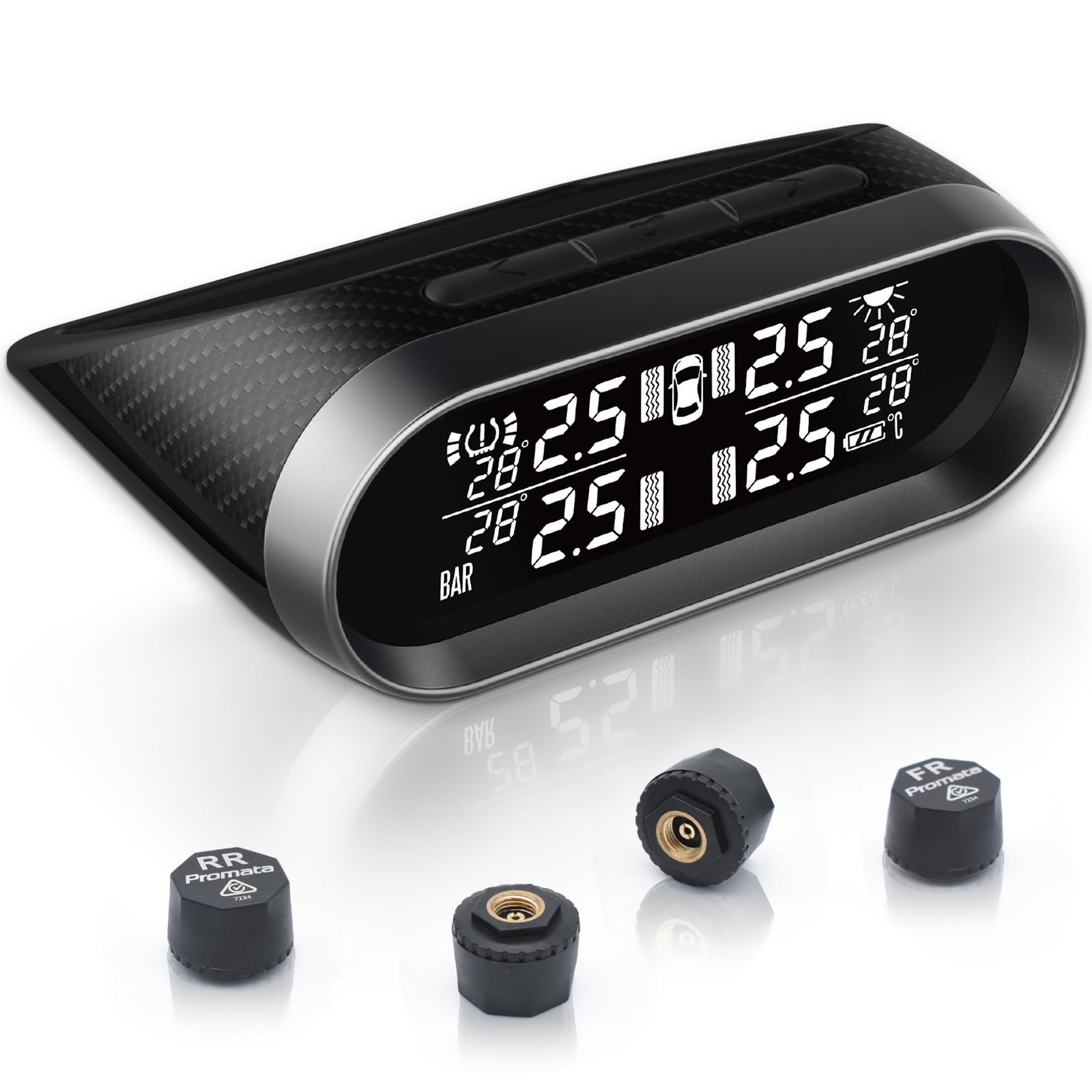Promata Mata2E – Sistema de monitoreo de presión de neumáticos para RV, TPMS solar inalámbrico con 4 sensores para remolque de via